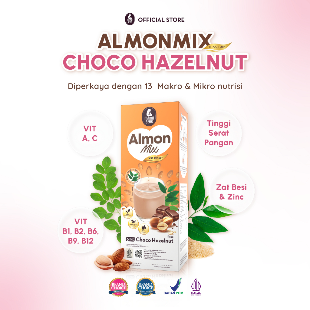 MAMABEAR ALMONMIX RASA CHOCO HAZELNUT MINUMAN ALMOND KAYA NUTRISI