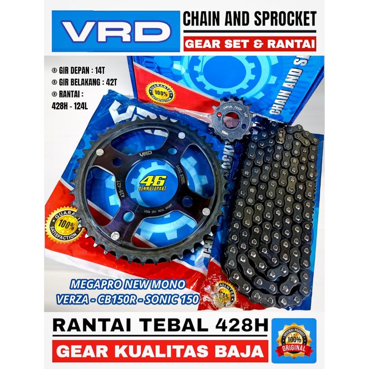 GEAR GIR RANTAI SET PAKET [ VRD ] HONDA - MEGAPRO NEW MONO , VERZA , CB150R , SONIC 150 , SUPRA GTR