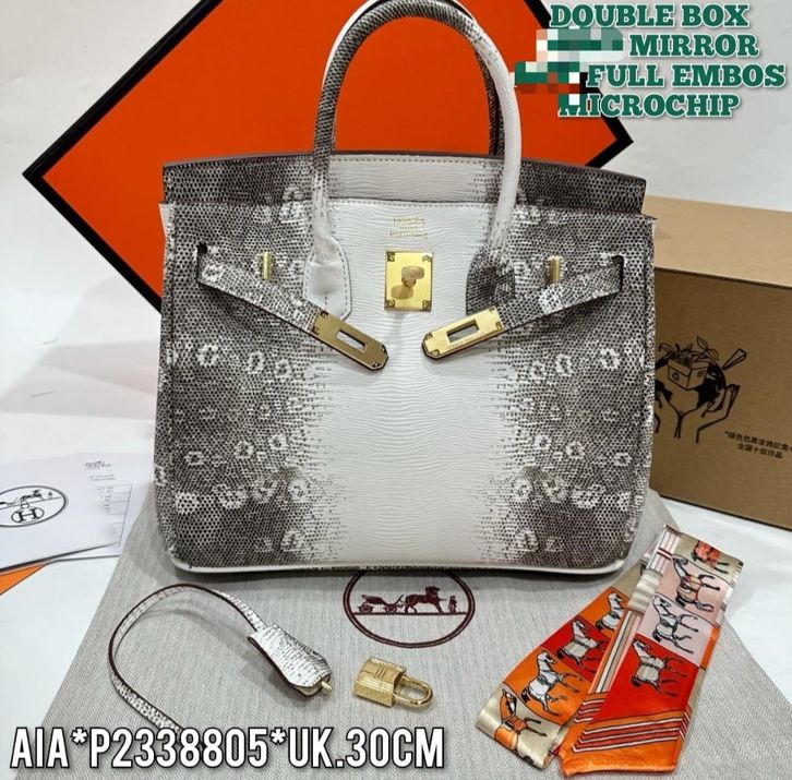 TAS WANITA HERMES BIRKIN LIZARD LEATHER MIRROR VVIP/TAS KREMES TOPHANDLE 30CM/TAS BRANDED TERBARU
