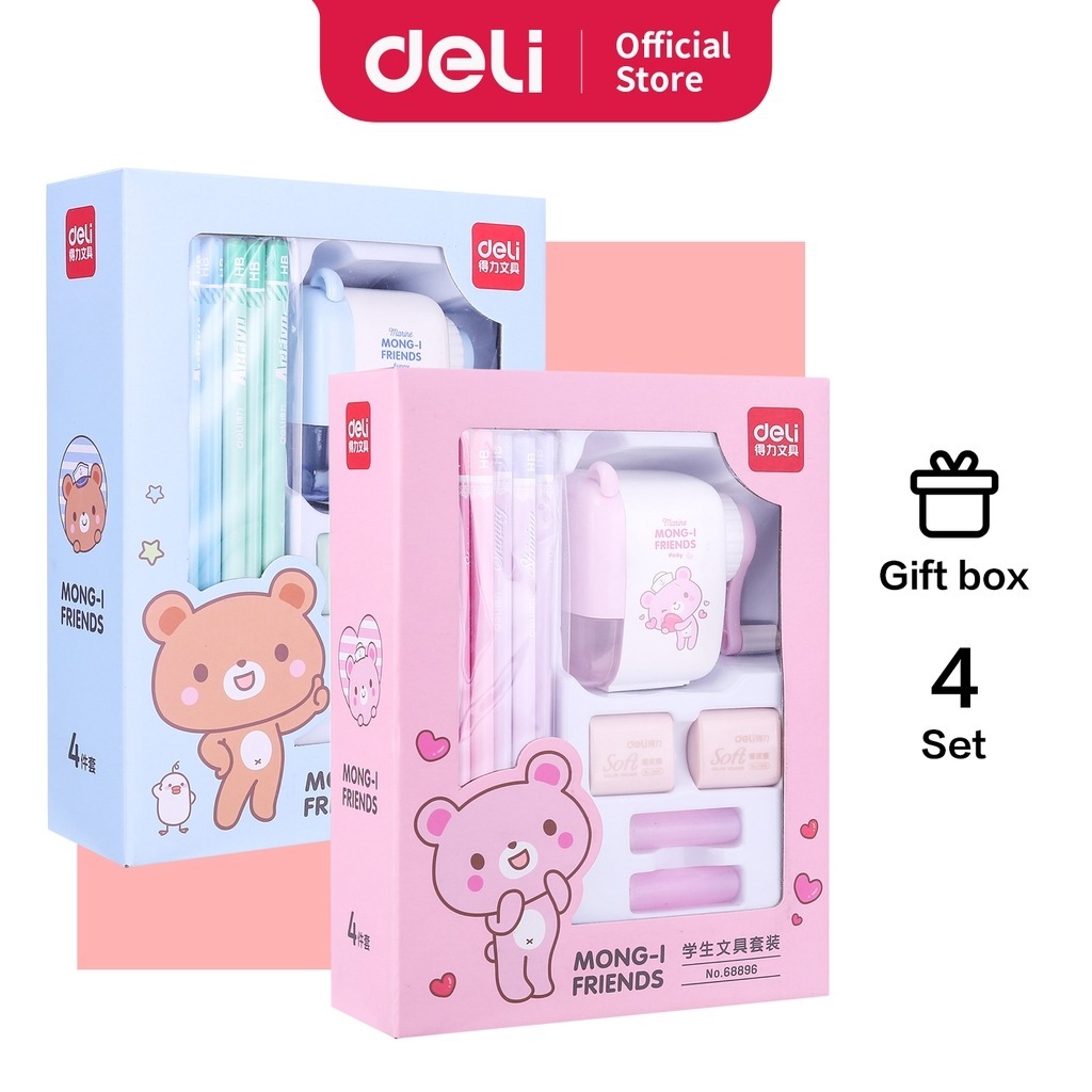 DELI - SET PERALATAN SEKOLAH ANAK / SCHOOL GIFT SET 68896 BLUE & PINK