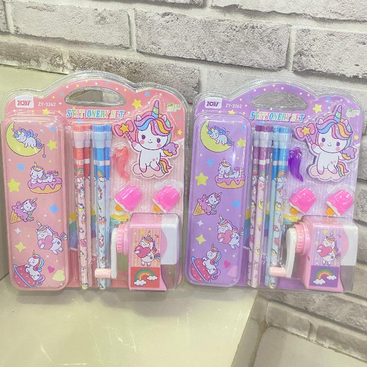 Stationery Set / Alat Tulis Sekolah / Kotak Pensil / Alat Tulis Anak 6 in 1 / Rautan Pensil / Peralatan sekolah / Pensil