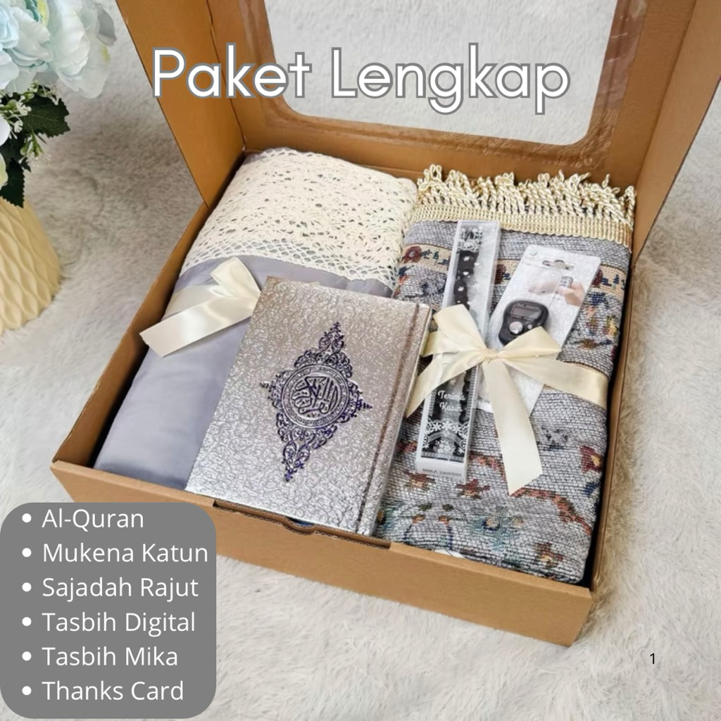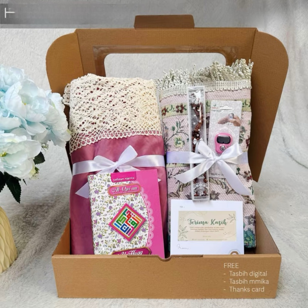 HAMPERS CEWEK MUKENA SEPERANGKAT ALAT SHOLAT SESERAHAN PERNIKAHAN - KADO ULANG TAHUN CEWEK - SOUVENIR HADIAH GURU HAJI & UMROH