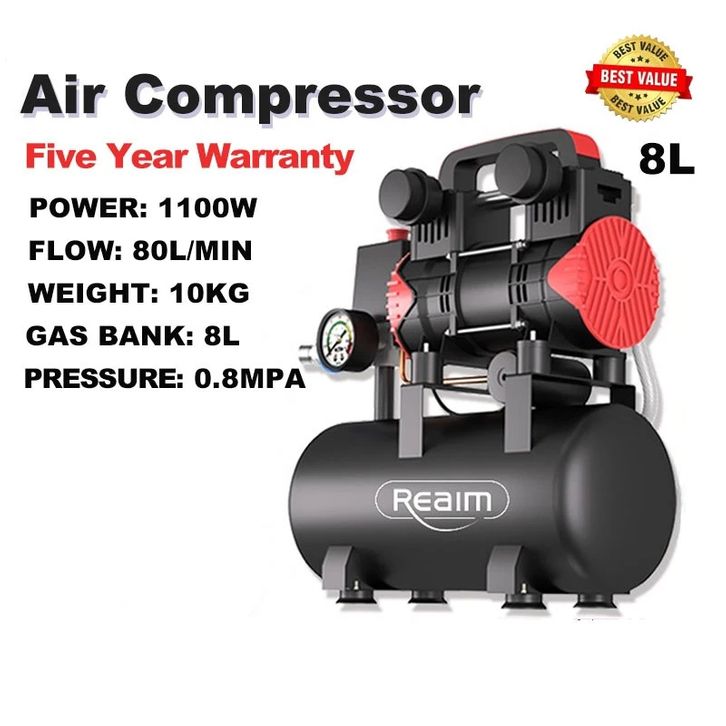 REAIM Air Compressor 12/36L Kompresor Angin Oiless Listrik 1100W Portable Alat Tekanan Udara