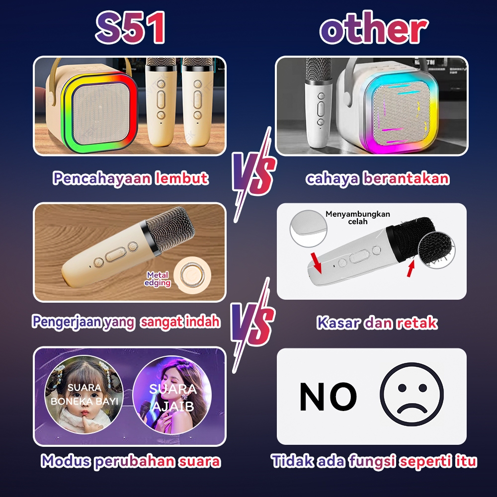 (HOT PRODUK) JOVITECH KARAOKE SPEAKER WIRELESS BLUETOOTH 2 MIC 1 SET MINI PORTABEL LUCU COLORFUL RGB KARAOKE SUPER BASS - S51