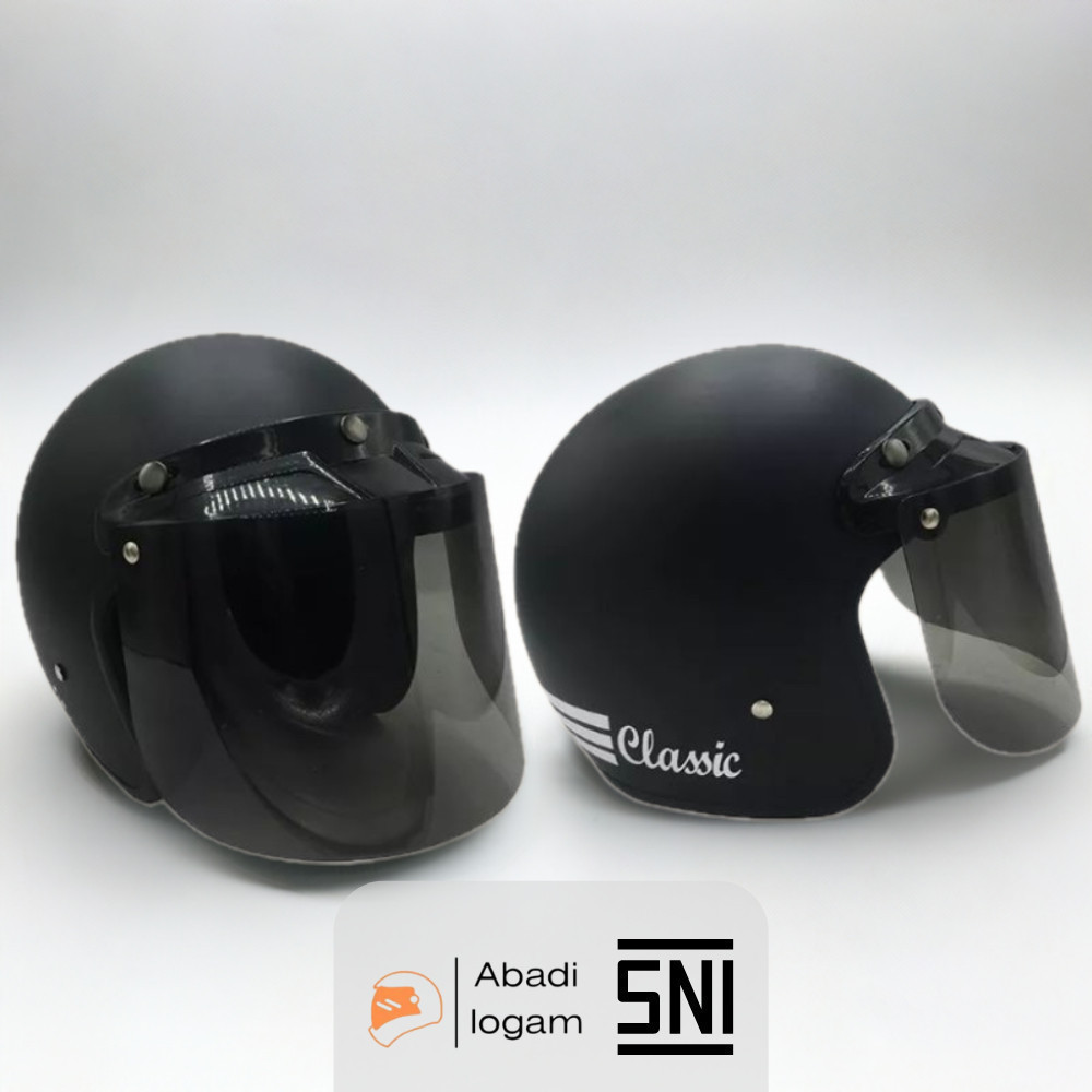 HEL BOGO DEWASA KLASIK SNI HDS HELET POLOS HALF FACE RETRO CLASSIC PRIA WANITA HIJAB