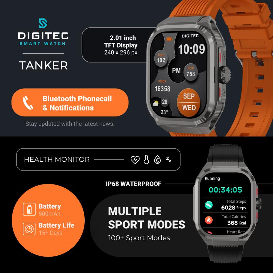 Digitec SW Smart Watch TANKER Jam Tangan Pria Digital Smartwatch Hitam Metal