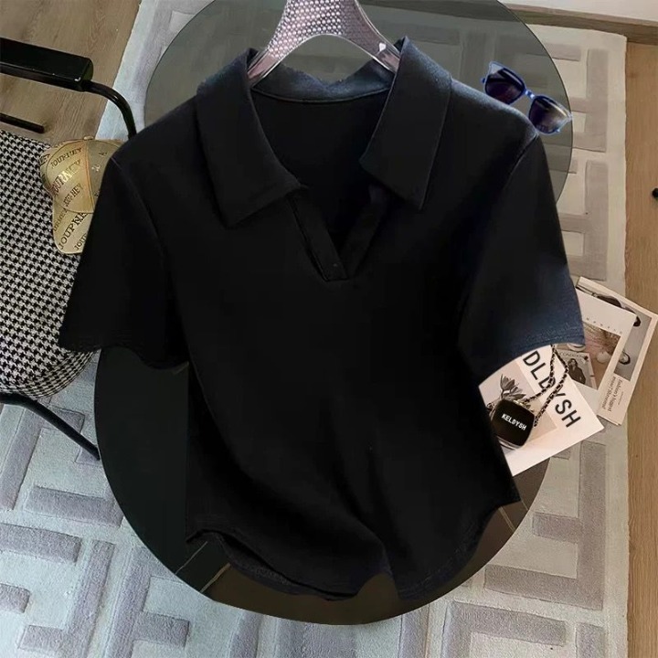 Kaos Crop Top Polo Shirt Wanita/ Crop Top Polos/ Kaos Wanita/ T-shirt Kerah Polos/ Kaos Crop Top/3 Size M-L-XL