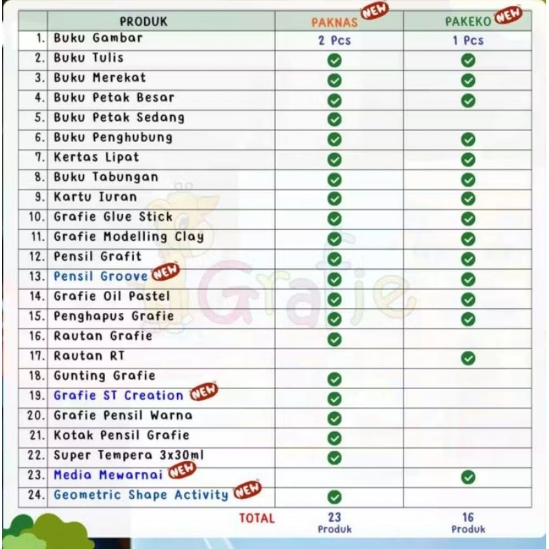 Grafie Stationery Pakeko Package 15 Item ( Alat Tulis dan Pembelajaran TK / PAUD)