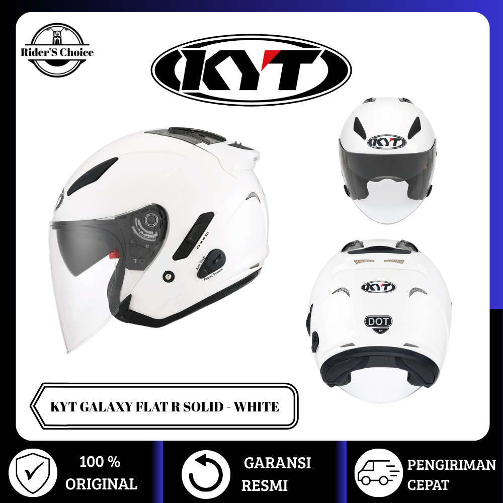 Helm KYT Kyoto Original Flat R Solid White Half Face Pria SNI Murah Tanpa DP Paket Ganteng Official Store