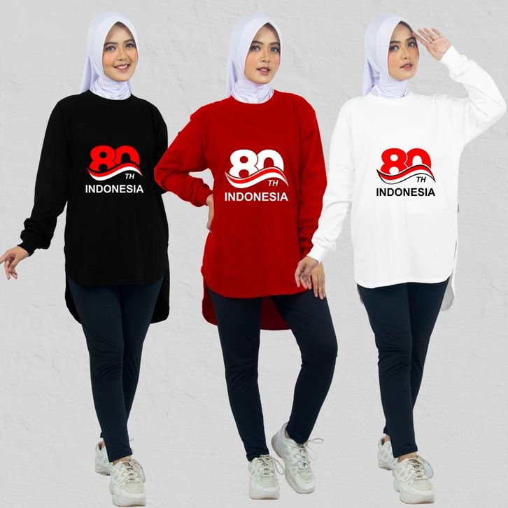 Kaos Merah Putih Wanita Lengan Panjang Kemerdekaan Baju Agustusan RI 2025 Jumbo