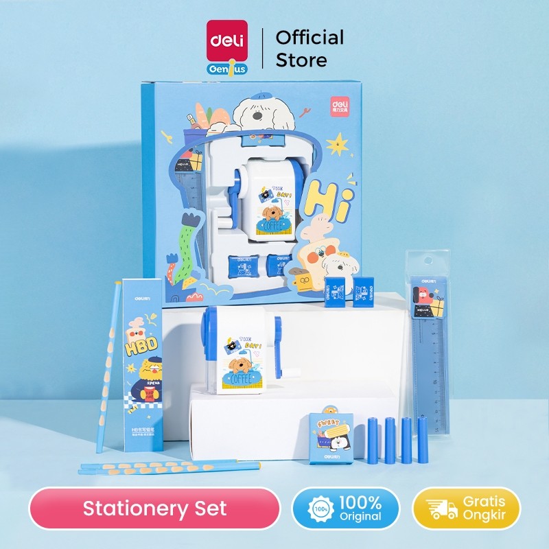 Deli Set Alat Tulis Kado / Stationary Gift Set 5 in 1 Pink Biru VG52