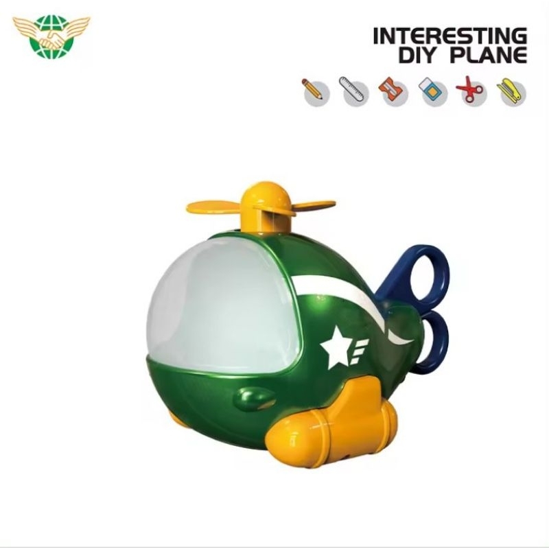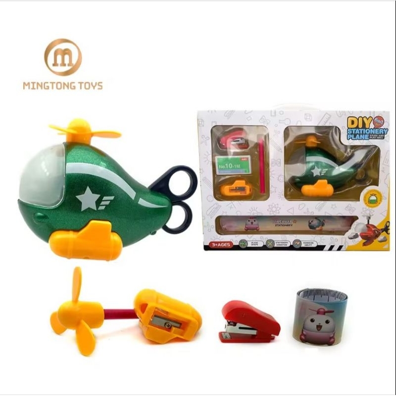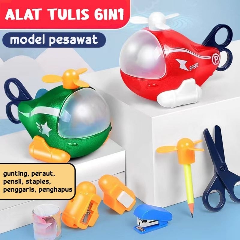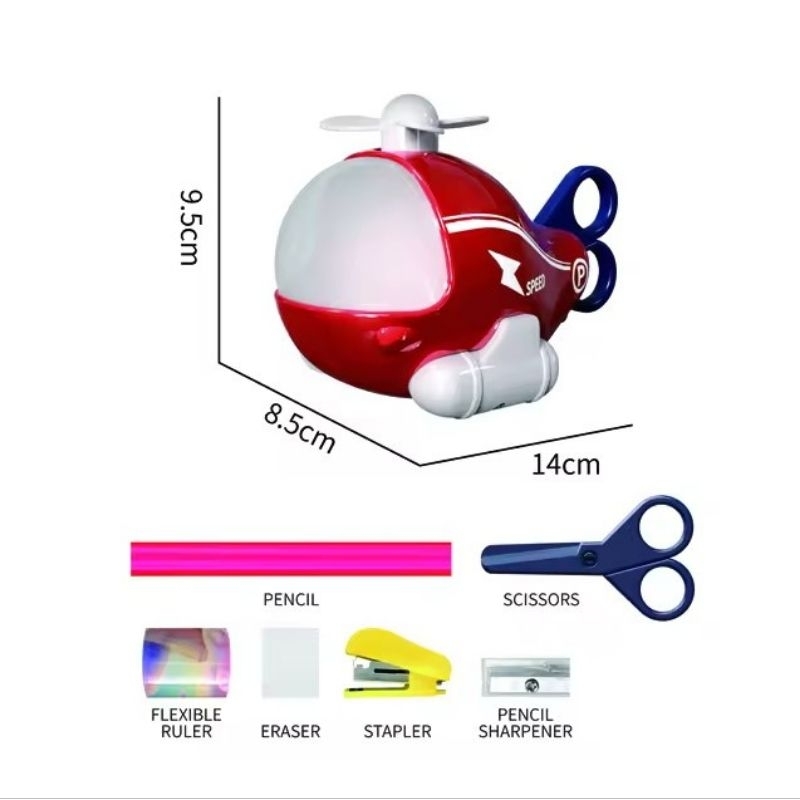 stationery dino / plane 6in1 set alat tulis helikopter lucu