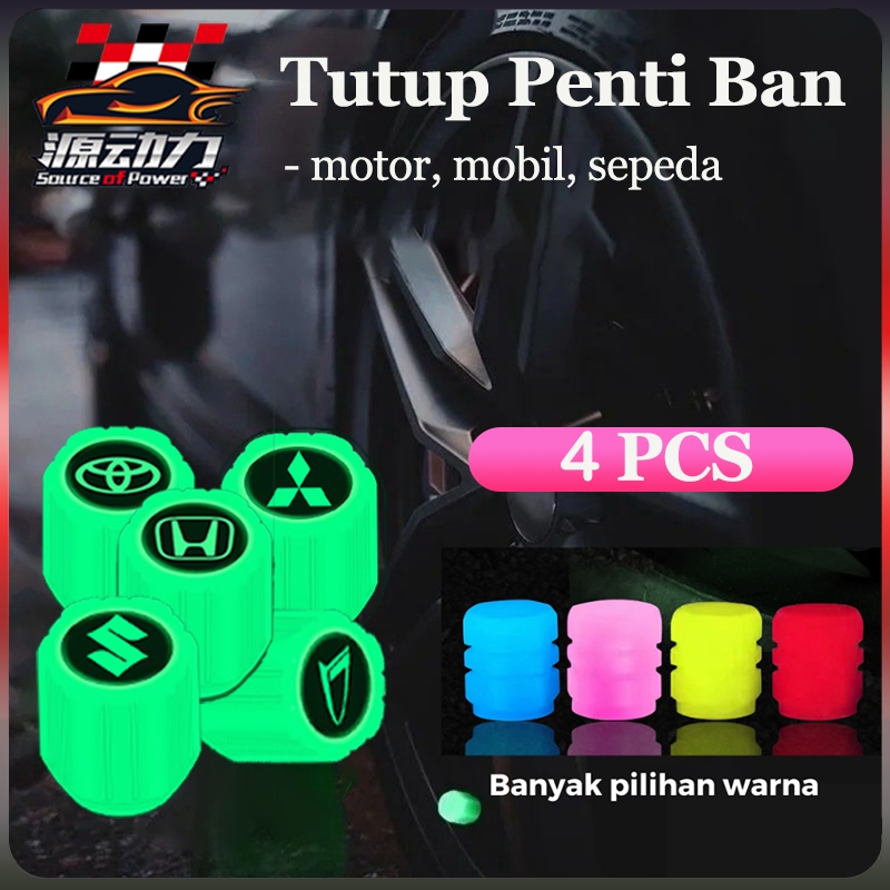 【4PCS】LOGO TUTUP P3NTIL BAN OBIL OTOR GLOW IN THE DARK LUINOUS VALVE CAP