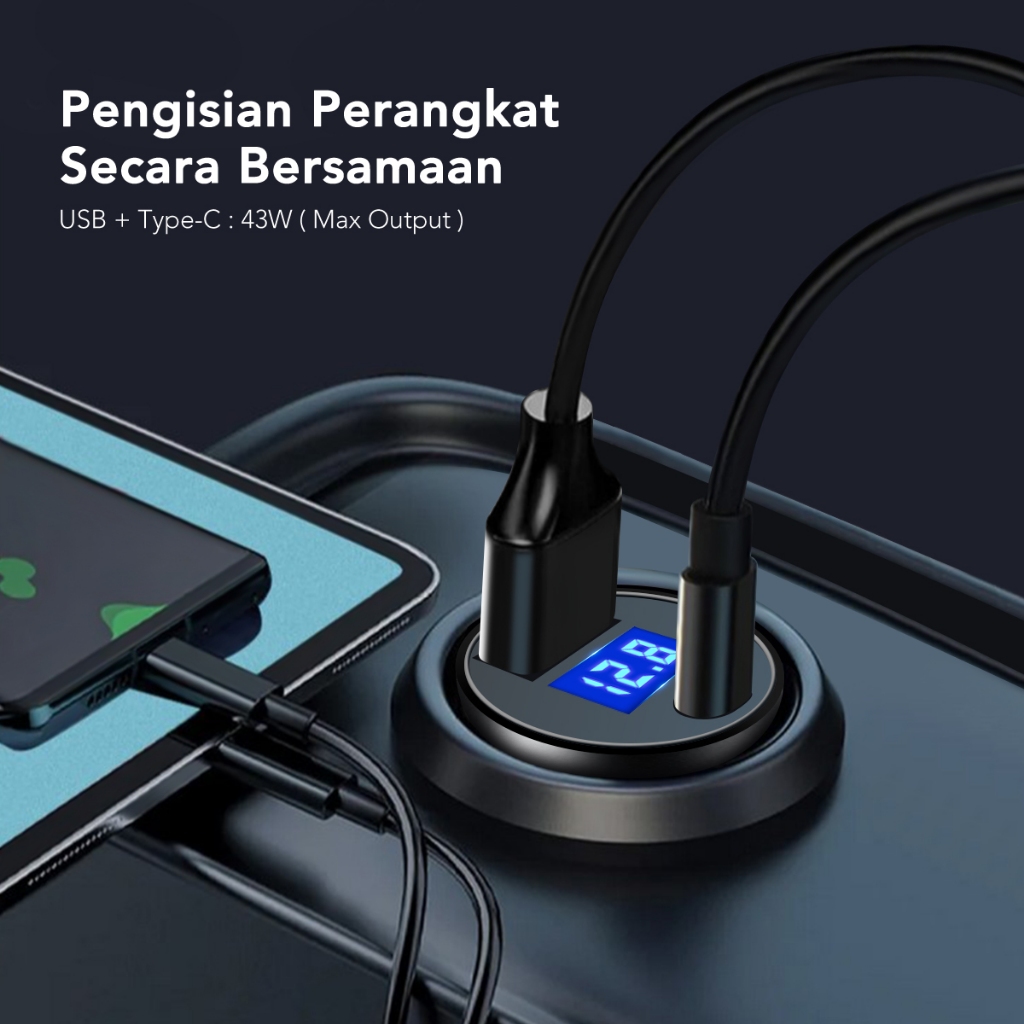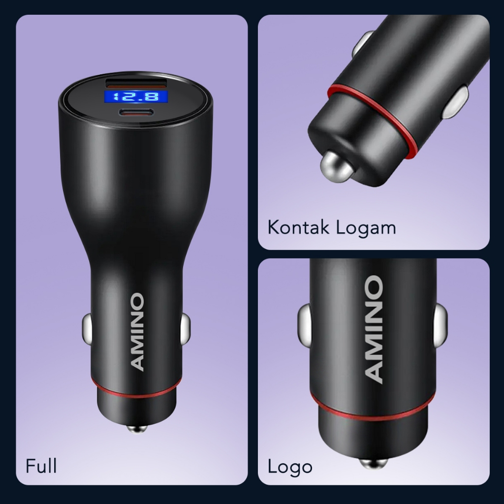 Amino Car Charger 43W Type-C PD+USB Mobil Quick Charge 3.0 / PD3.0 / 2 Ports LED Screen For Xiaomi Samsung Huawei