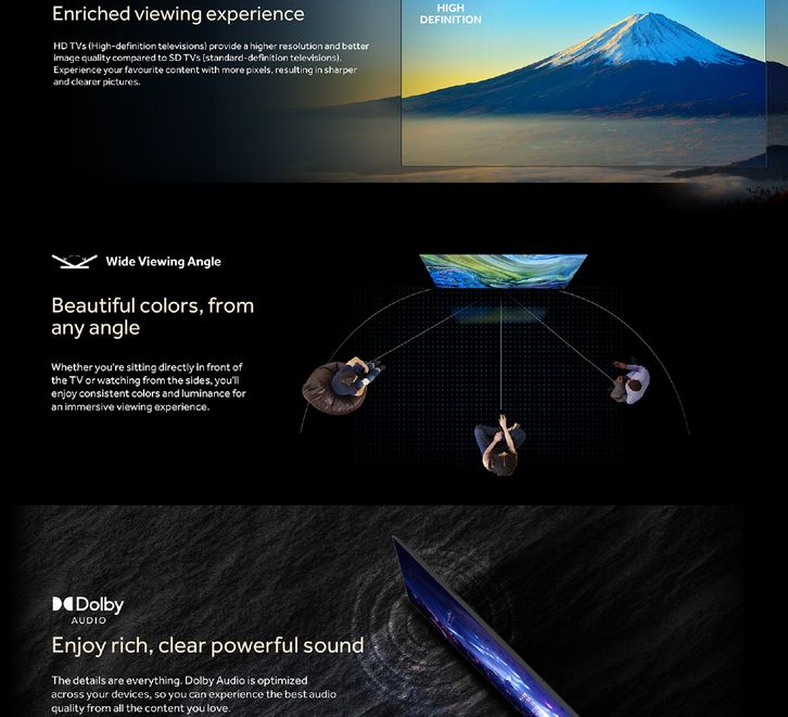 AQUA Elektronik TV 32 Inch AQT32K70M - Miracast - HD Ready - Auto Volume Leveler - USB Movie - Narrow Bezel