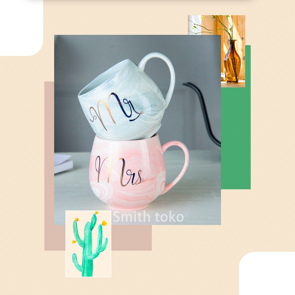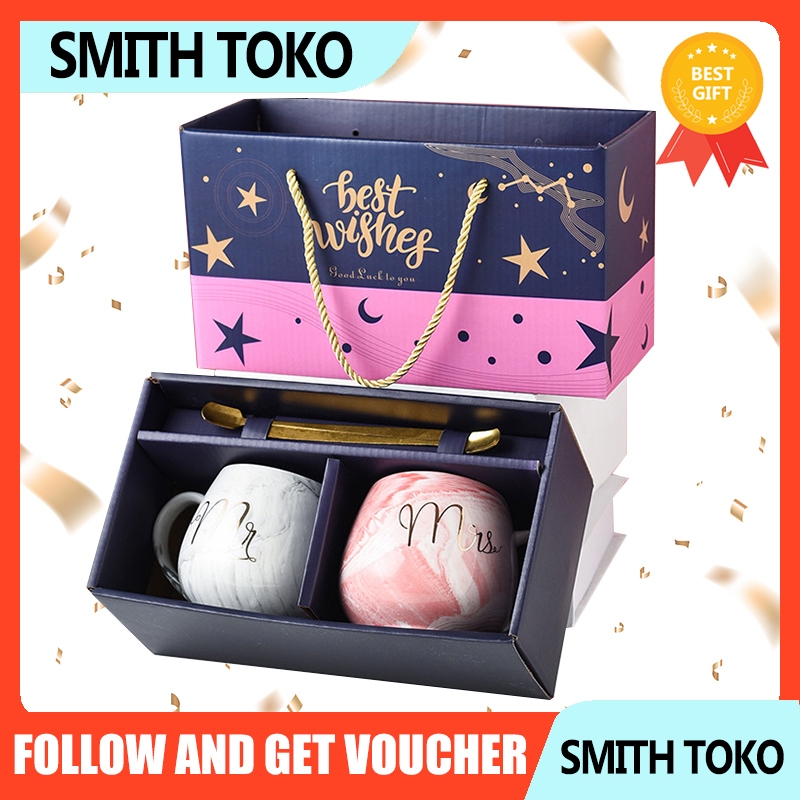 SET KOTAK HADIAH GELAS KERAMIK COUPLE GAYA EROPA UTARA GELAS KOPI MUG HADIAH PERNIKAHAN MANGKOK KERAMIK