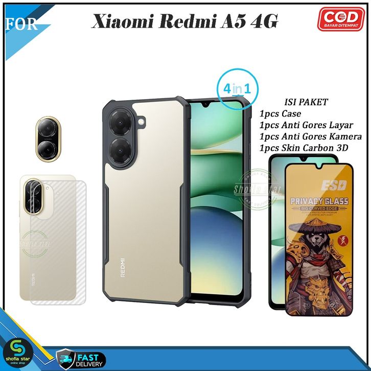 (TERLARIS)PAKET 4in1 Case Tempered AG Xiaomi Redmi A5 4G 13X Poco C71 Softcase Fusion Transparan Cover