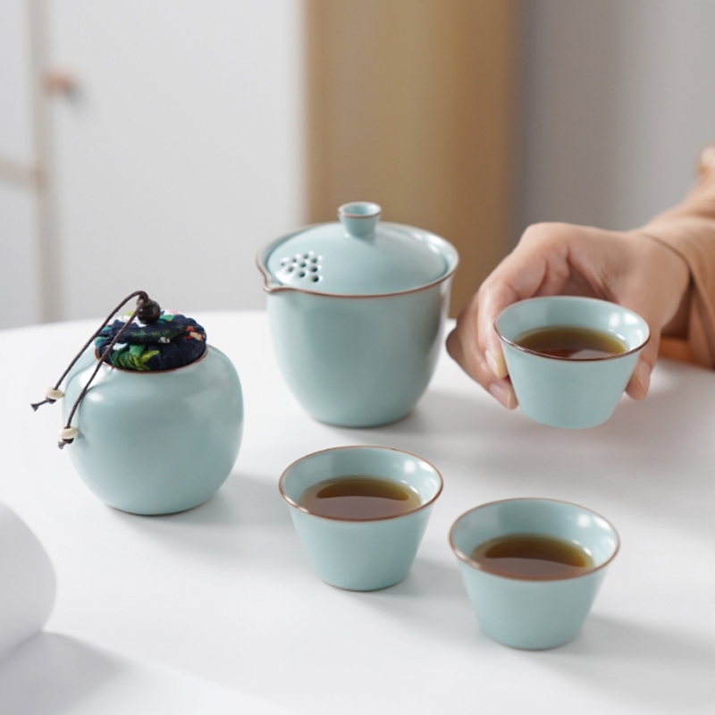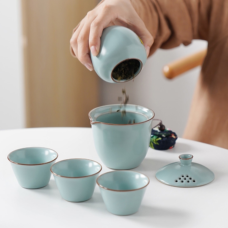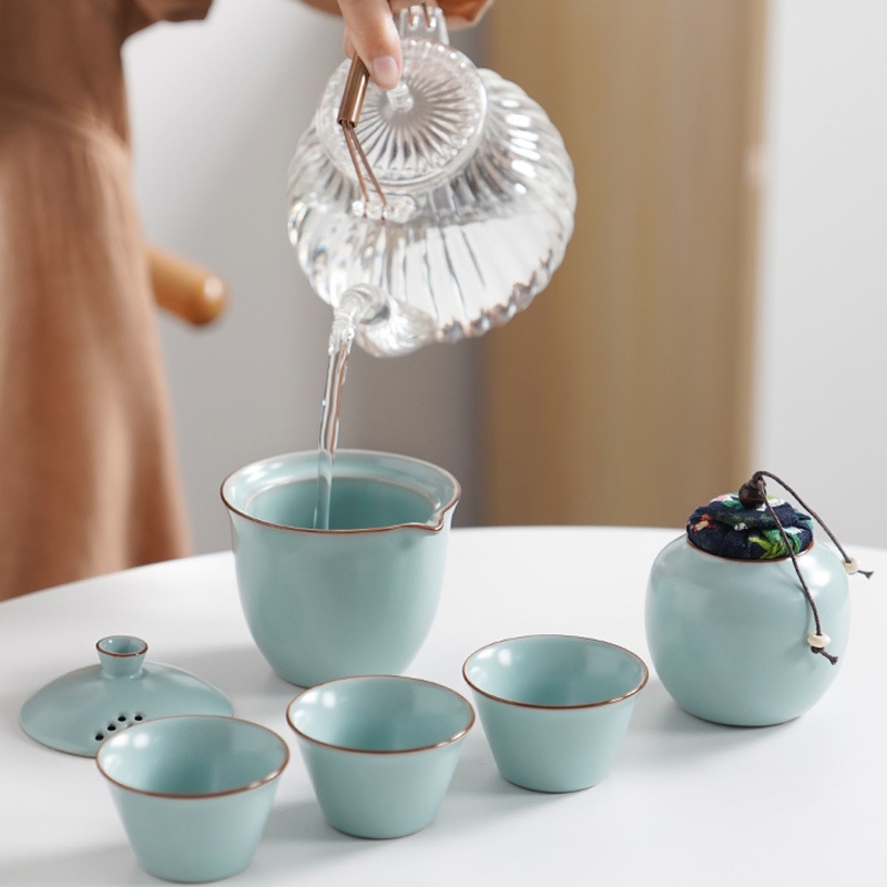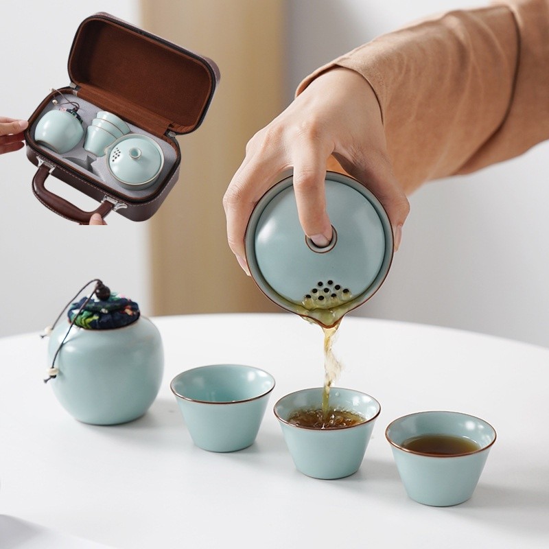 TEAPOT CERAMIC 5PCS SET TRAVEL WITH BAG/5 SET TEA SET GIFT SET PREMIUM KERAMIK LENGKAP HAMPERS KADO SET UNIK TEASET CANGKIR TEAPOT TEH CANTIK TRAVEL PORTABLE BAG