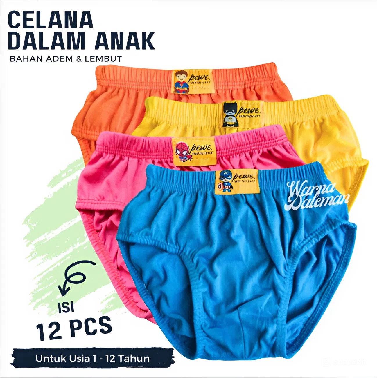 CELANA DALAM ANAK COWOK 12 PCS WARNA USIA 2 3 4 5 6 7 8 9 10 TAHUN SEMPAK CD COWOK CEWEK 1 LUSINNAN PROMO MURAH