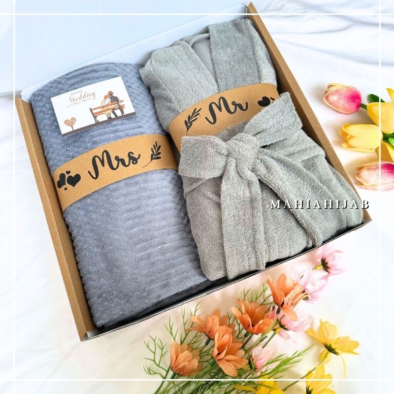 KADO PERNIKAHAN COUPLE KIMONO + HANDUK / HAMPERS WEDDING / HAMPERS HANDUK KIMONO MANDI