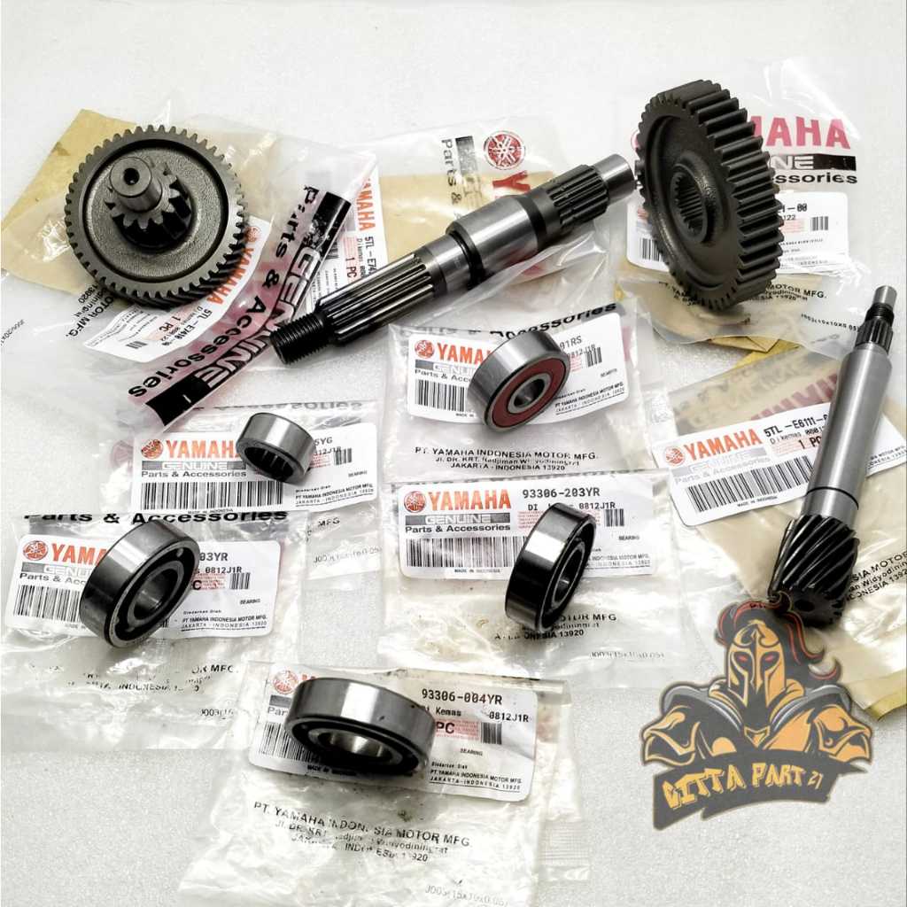 ORIGINAL YAMAHA GIGI GEAR RASIO SET KOMPLIT 4 MACAM PLUS BEARING 5 BIJI 6301 6004 6203 6203 PLUS BEARING PULLY ASLI YAMA