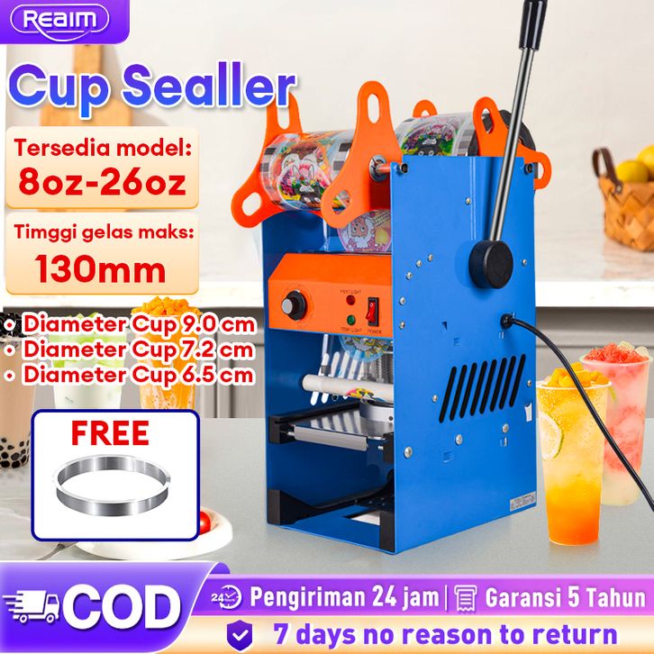 REAIM Original Mesin Press Cup Sealer Semua Ukuran 8 - 26 Oz Machine Alat penutup minuman Mesin Press Gelas Plastik Seal