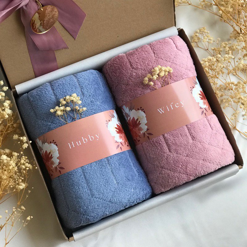 HAMPERS WEDDING COUPLE HANDUK MICROFIBER 70X140CM - HADIAH PERNIKAHAN HANDUK COUPLE - HADIAH WEDDING COUPLE - WEDDING GIFT HANDUK