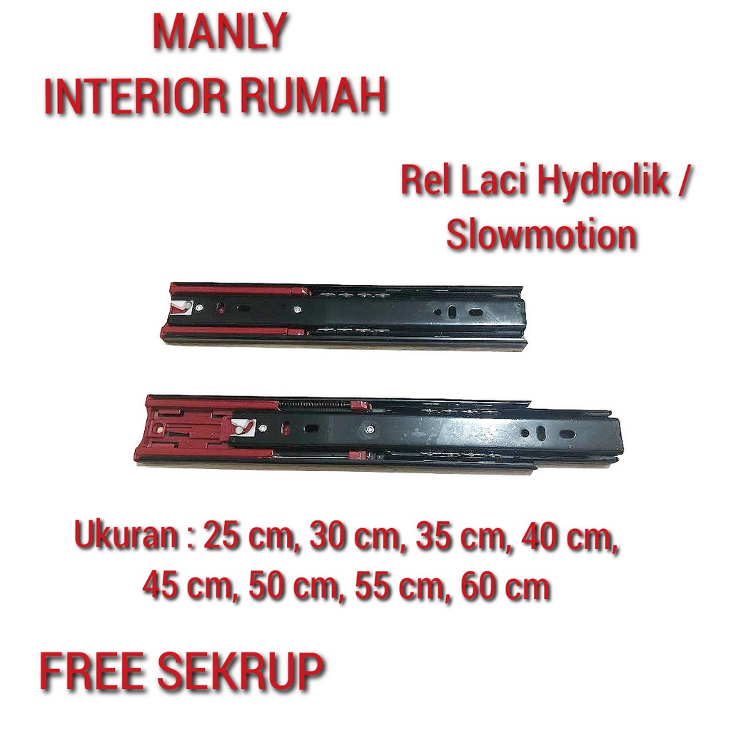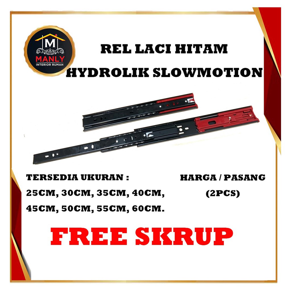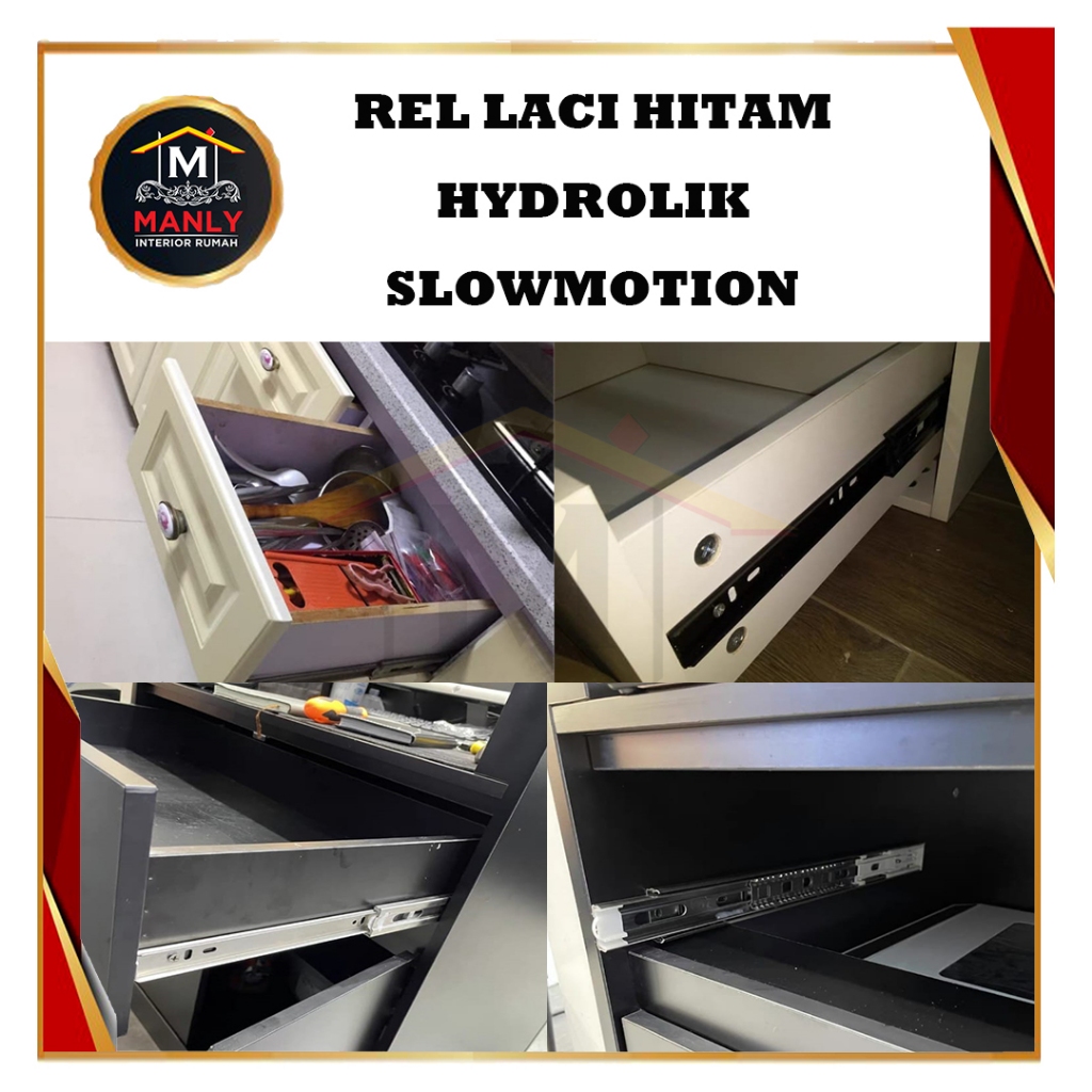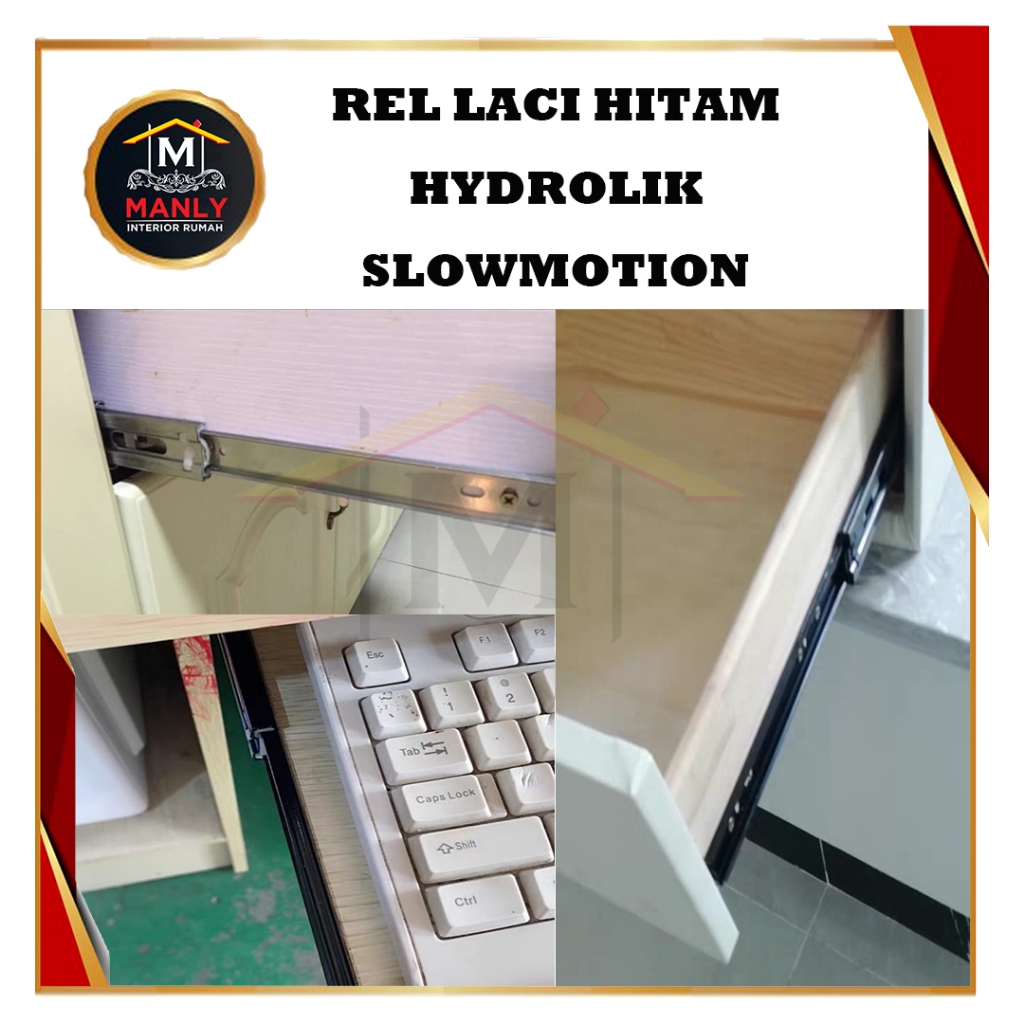 Rel Laci Hitam Hydrolik Slowmotion Full Extention 4,5cm ( 2x Tarik) Isi 1 set (2 pcs)
