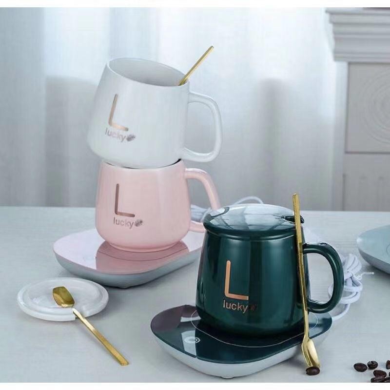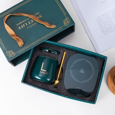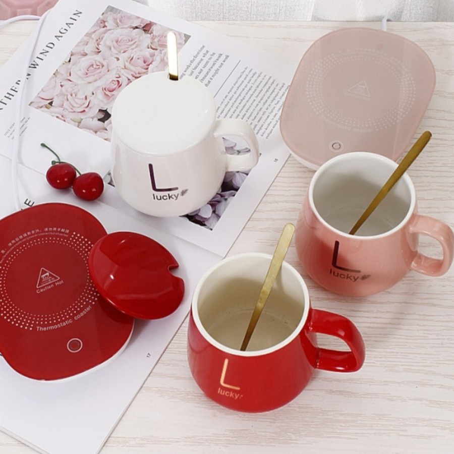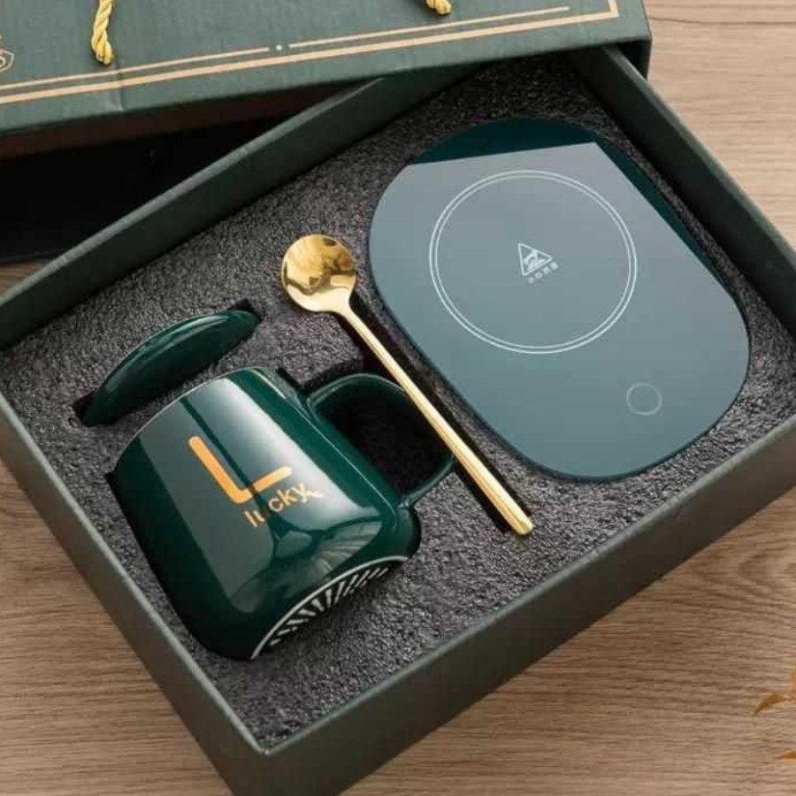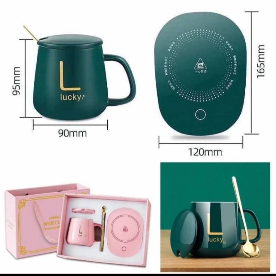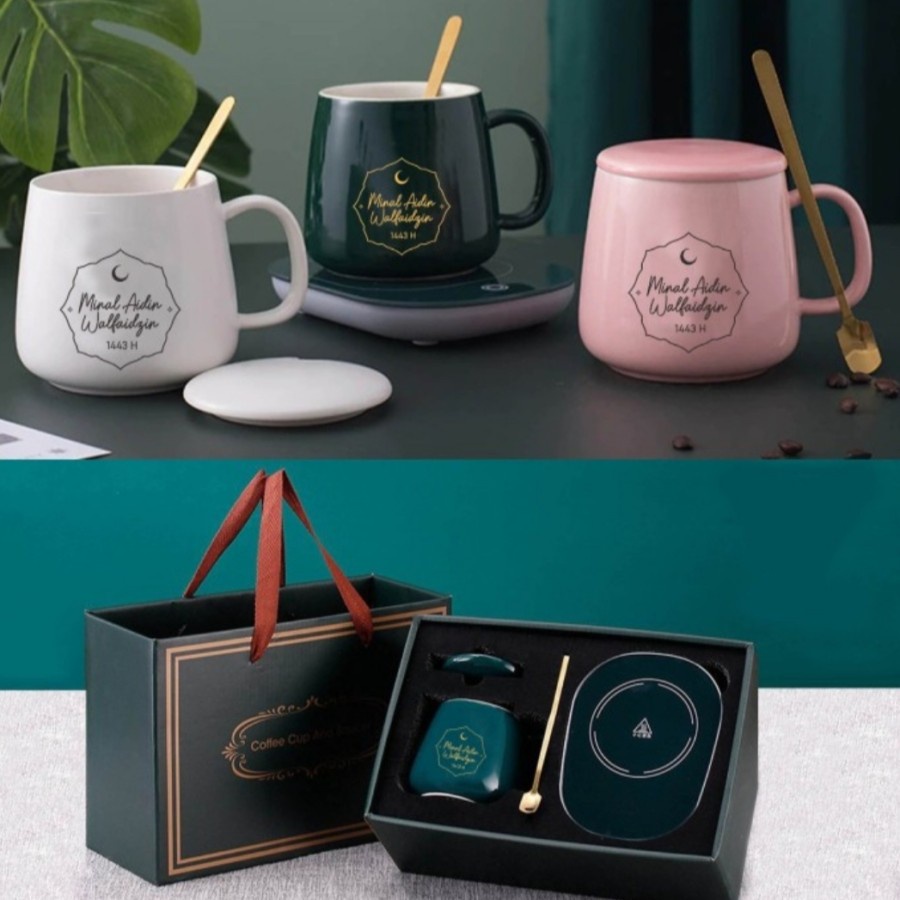GELAS SET KERAMIK DENGAN PEMANAS KOPI TEH HADIAH SOUVENIR ULTAH WEDDING
