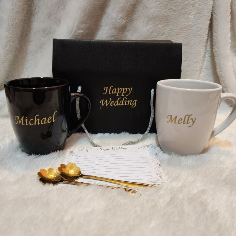 HAMPERS MUG COUPLE KADO PERNIKAHAN DENGAN REQUEST NAMA