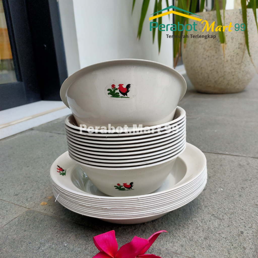 (24 PCS) PAKET HEMAT 12 PIRING + 12 MANGKOK PUTIH AYAM JAGO / MANGKOK MURAH / PIRING MURAH / PIRING MANGKOK PLASTIK