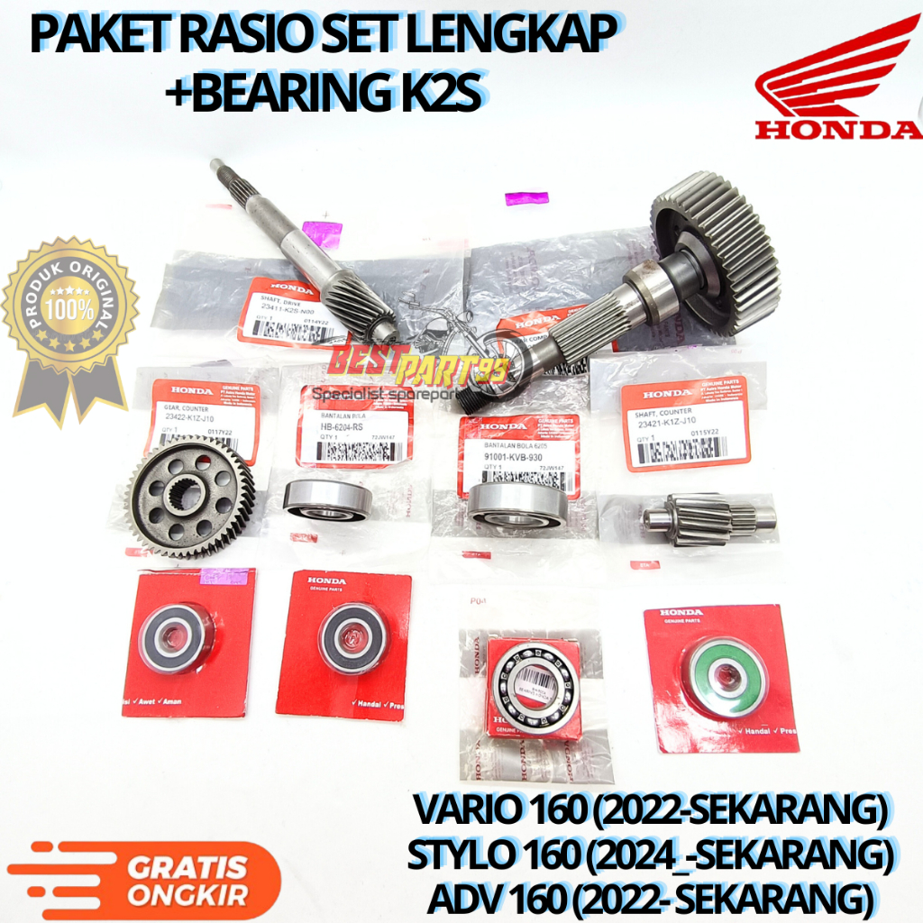 Paket gigi rasio set lengkap + bearing K2S honda VARIO 160 2022 STYLO 160 2024,ADV A60 2022 AHM