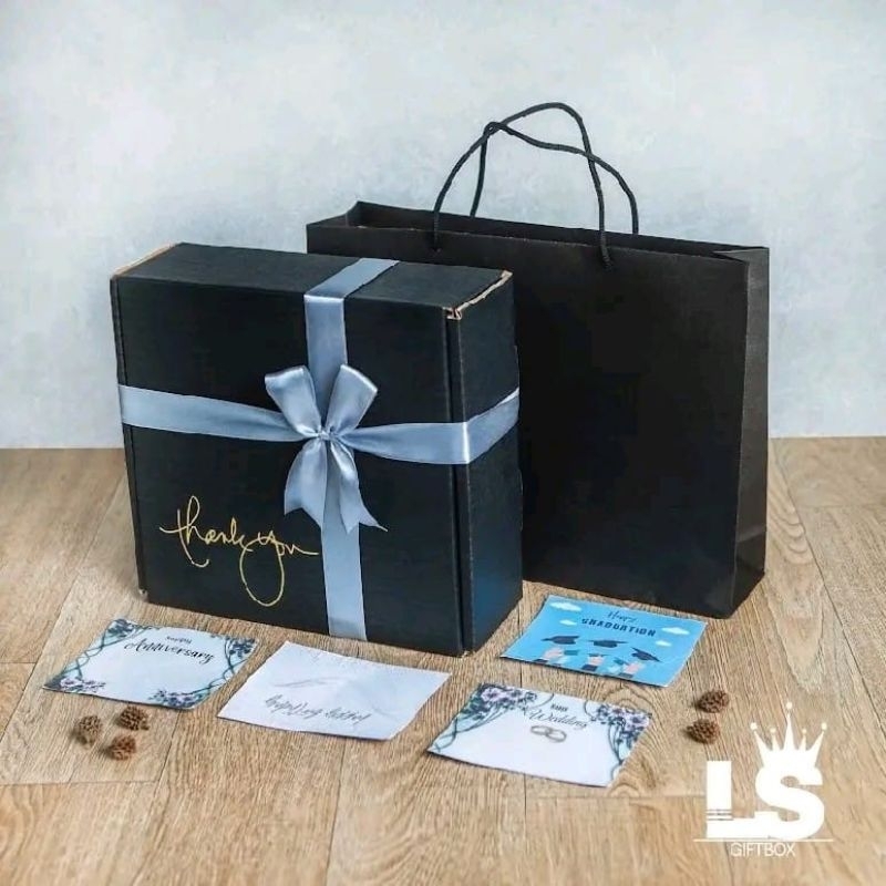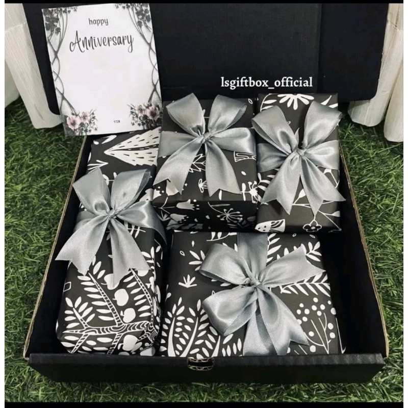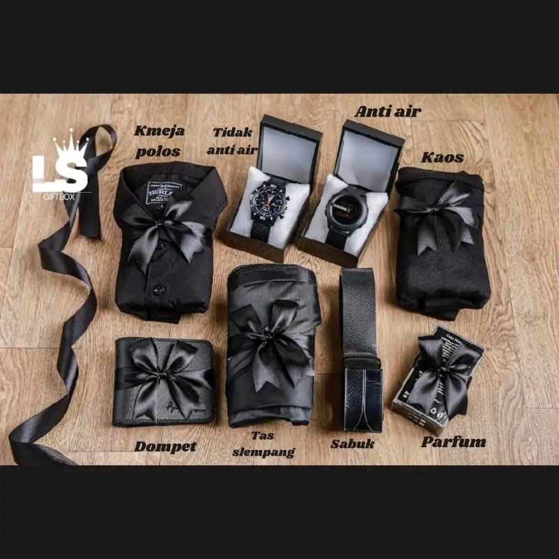 ( BUNGKUS KERTAS KADO)GIFT BOX COWOK ULANG TAHUN HAMPERS PERNIKAHAN WISUDA KEMEJA HITAM JAM ANTI AIR