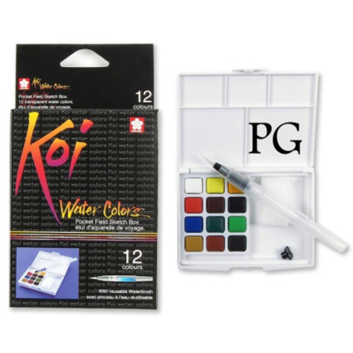 Sakura Koi WaterColors 12 Color Sketch Pocket Box Set Watercolour Cat Air 12 Warna Travel Paint