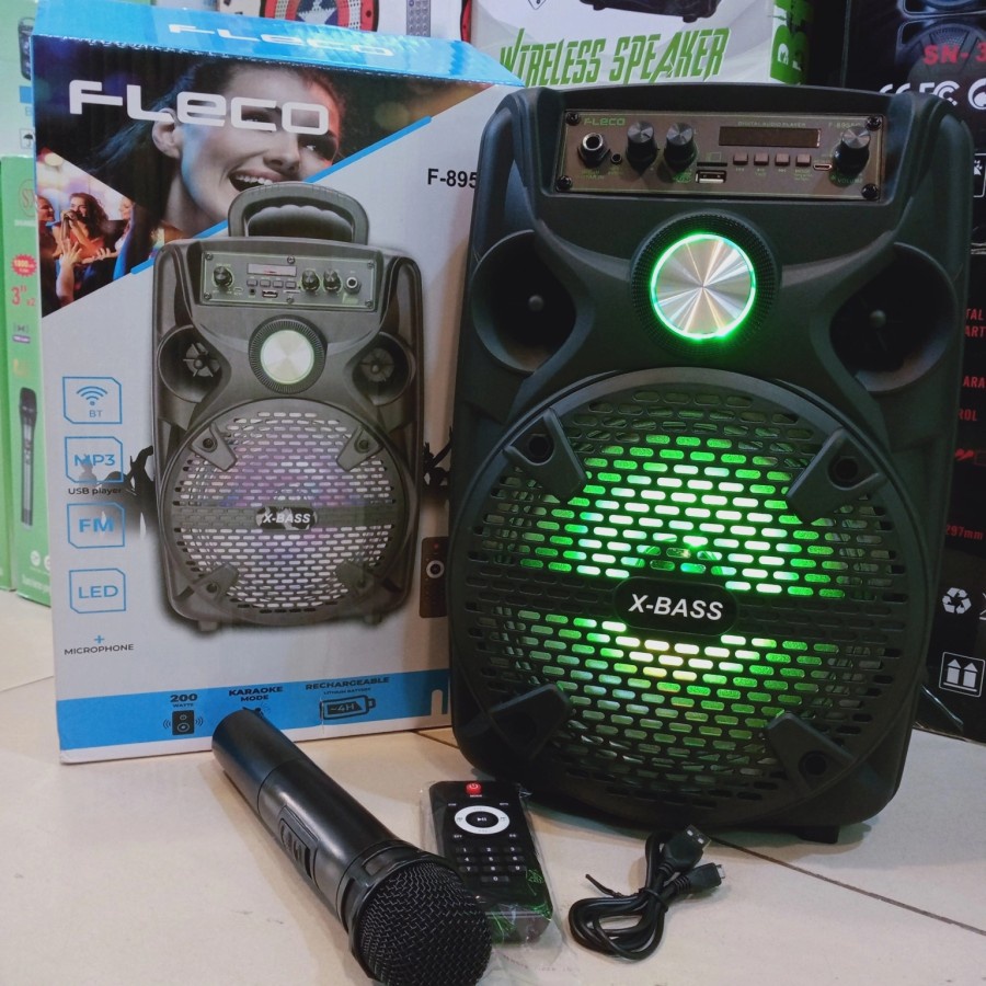 SPEAKER BLUETOOTH WIRELESS FLECO 8'5 INCH F-8955C/F-8511/F-8512/F-8882M BONUS MIC WIRELESS X-BASS//SPEAKER KARAOKE//SPEAKER SALON AKTIF X-BASS//SPEAKER WIRELESS