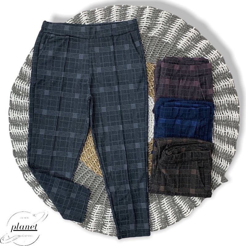 CELANA KOTAK KOTAK WANITA JUMBO BIG SIZE CELANA PANJANG CEWEK KAIN MELAR TARTAN BAGGY PANTS PINGGANG KARET CELANA CEWEK