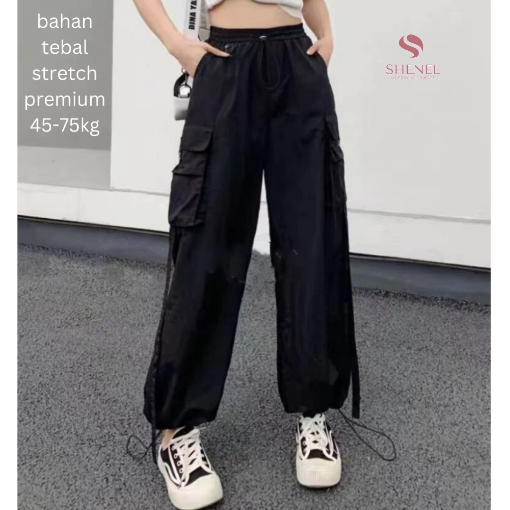 Shenel | Zia Cargo Pants Wanita Stretch Cargo Bahan Melar Celana Cewek Cargo Wanita Viral Cargo Bangkok Celana Karet Kek