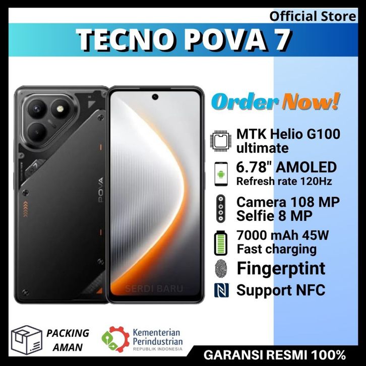 TECNO POVA 7 8/256 GB - TECNO POVA 7 4G 8/128 GARANSI RESMI - Mediatek Helio G100 Ultimate - BATTERY 7000 mAh