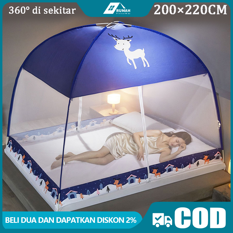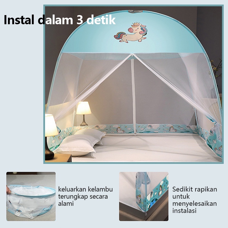 【Bantal Gratis】kelambu tidur Portable 120x200 180x200cm Kelambu Lipat Kelambu Tempat Tidur Dewasa Anti Nyamuk Kelambu Pelajar Kelambu Tenda Kelambu Jumbo-Biru