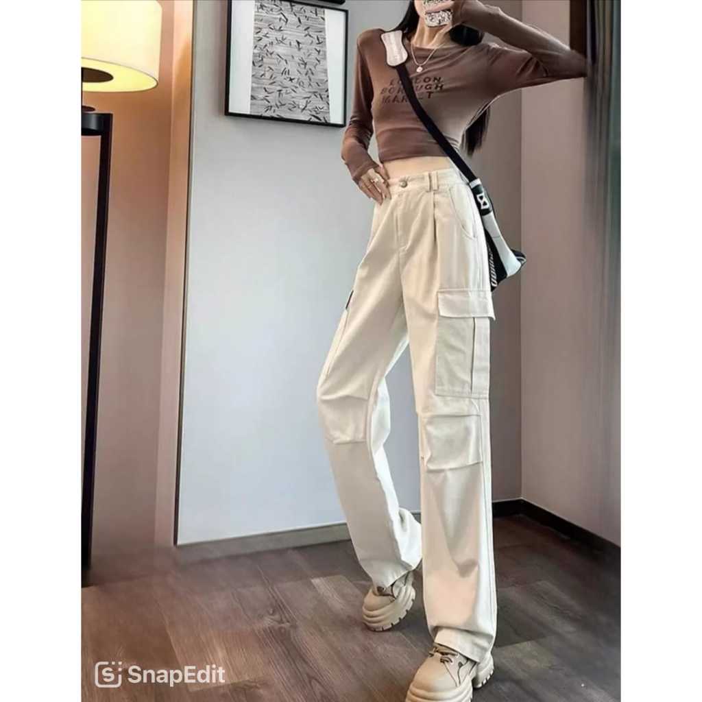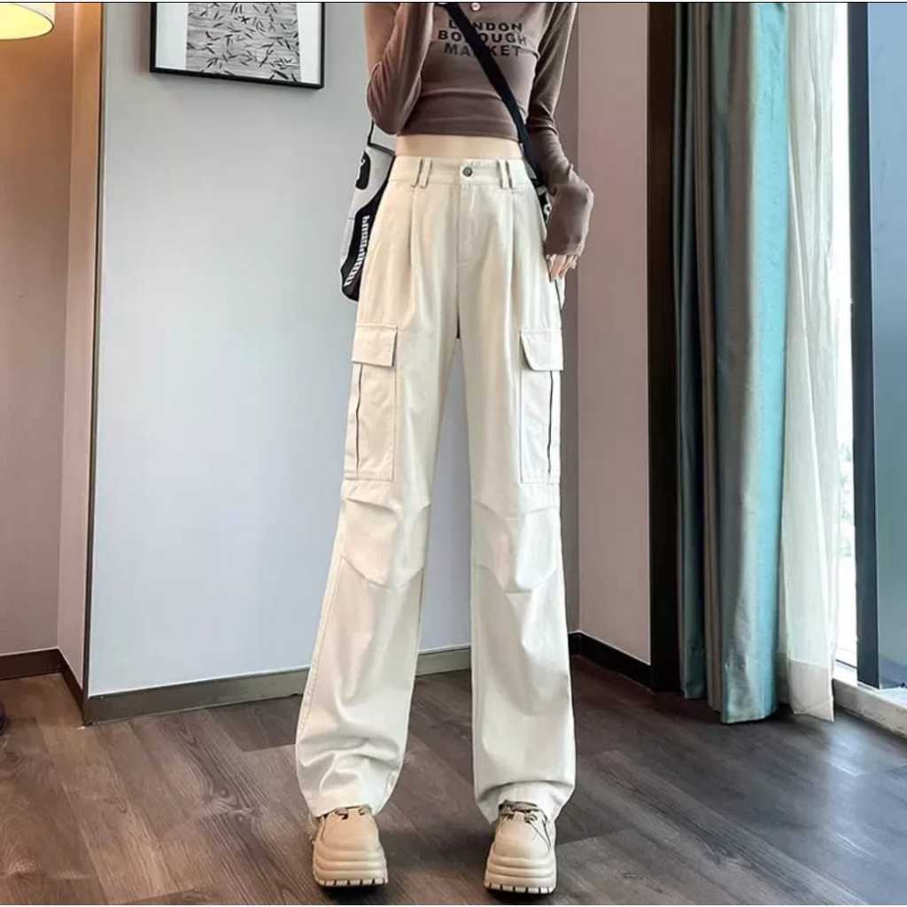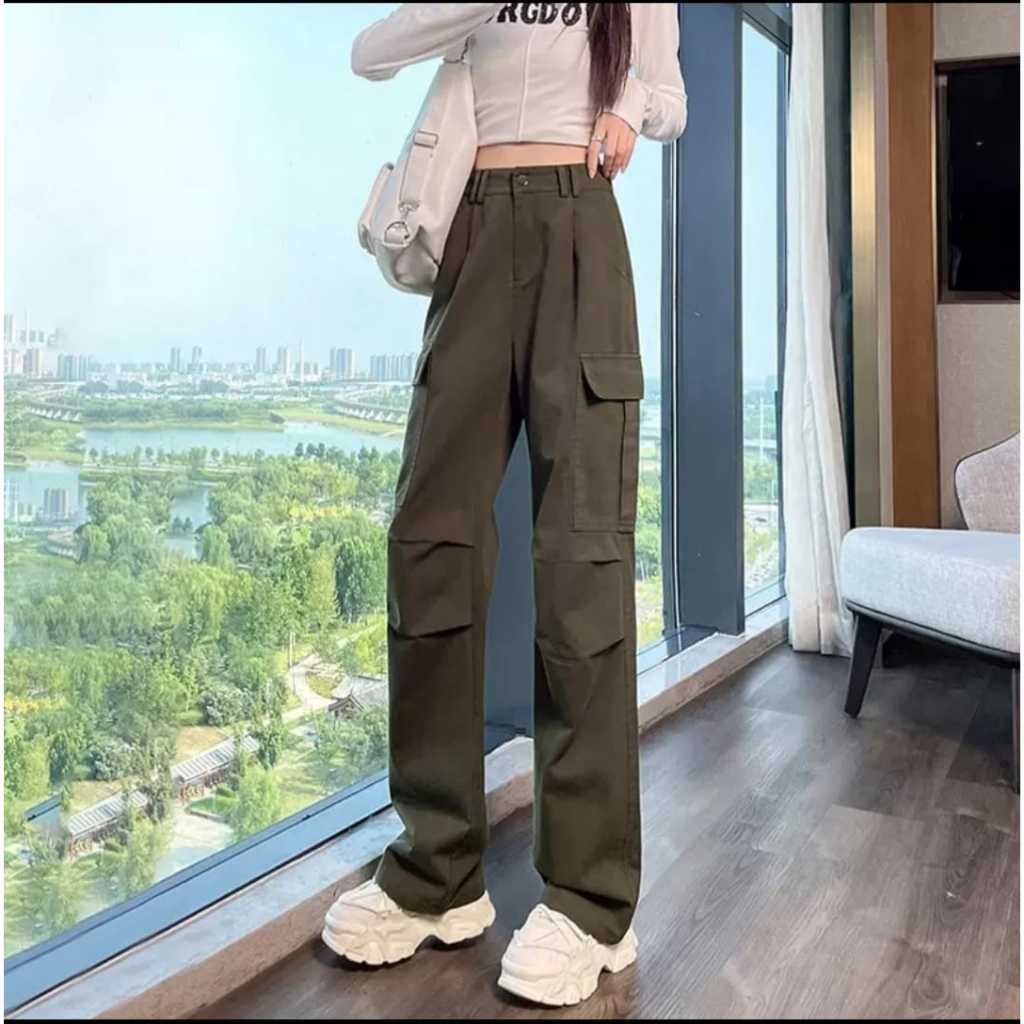 GLOSIR Celana cargo wanita korean style - Celana cargo highwaist loose Kasual Premium