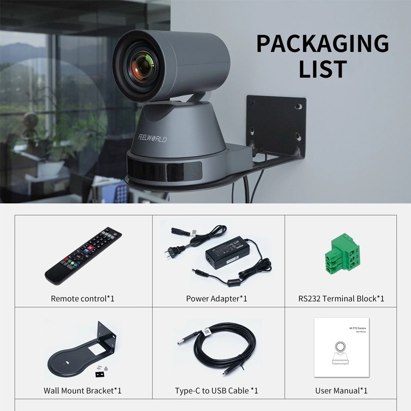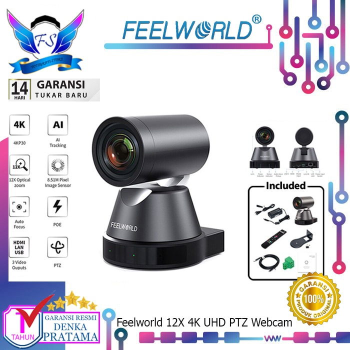 Feelworld 4K12X 4K UHD PTZ Webcam USB HDMI Streaming Camera Portable with 12x Optical Zoom Garansi Resmi