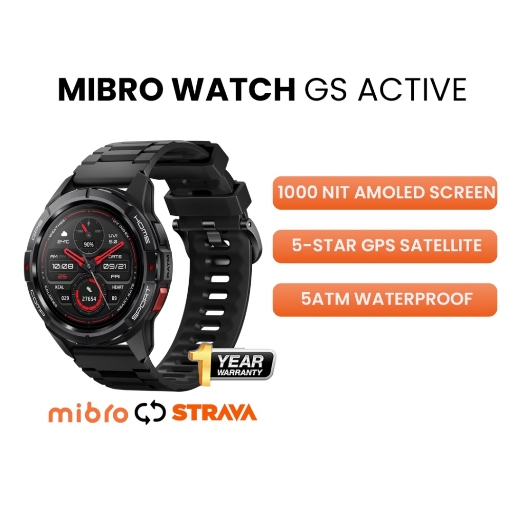 Mibro GS Active GPS Outdoor Sport Smartwatch 1000nit 1.3 AMOLED HD Screen 150+ Sports Modes 5 ATM Waterproof Jam Tangan