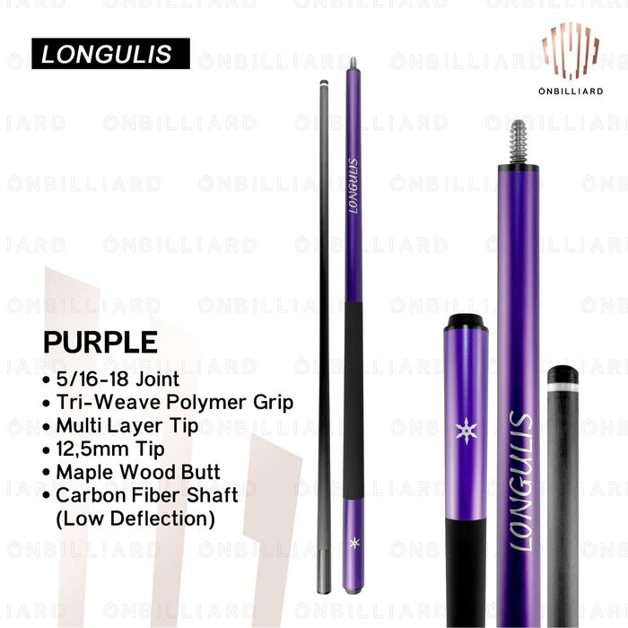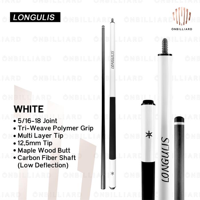 Longulis Cue Stick Billiard Carbon Play 12.5mm Low Deflection Stik Biliar Billiar Biliard Bilyar