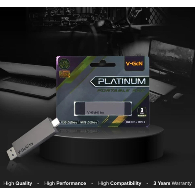 SSD VGEN Platinum 128GB 256GB 512GB 1TB Portable USB 3.2 + Type C External Eksternal Mini Solid State Drive Disk OTG USB