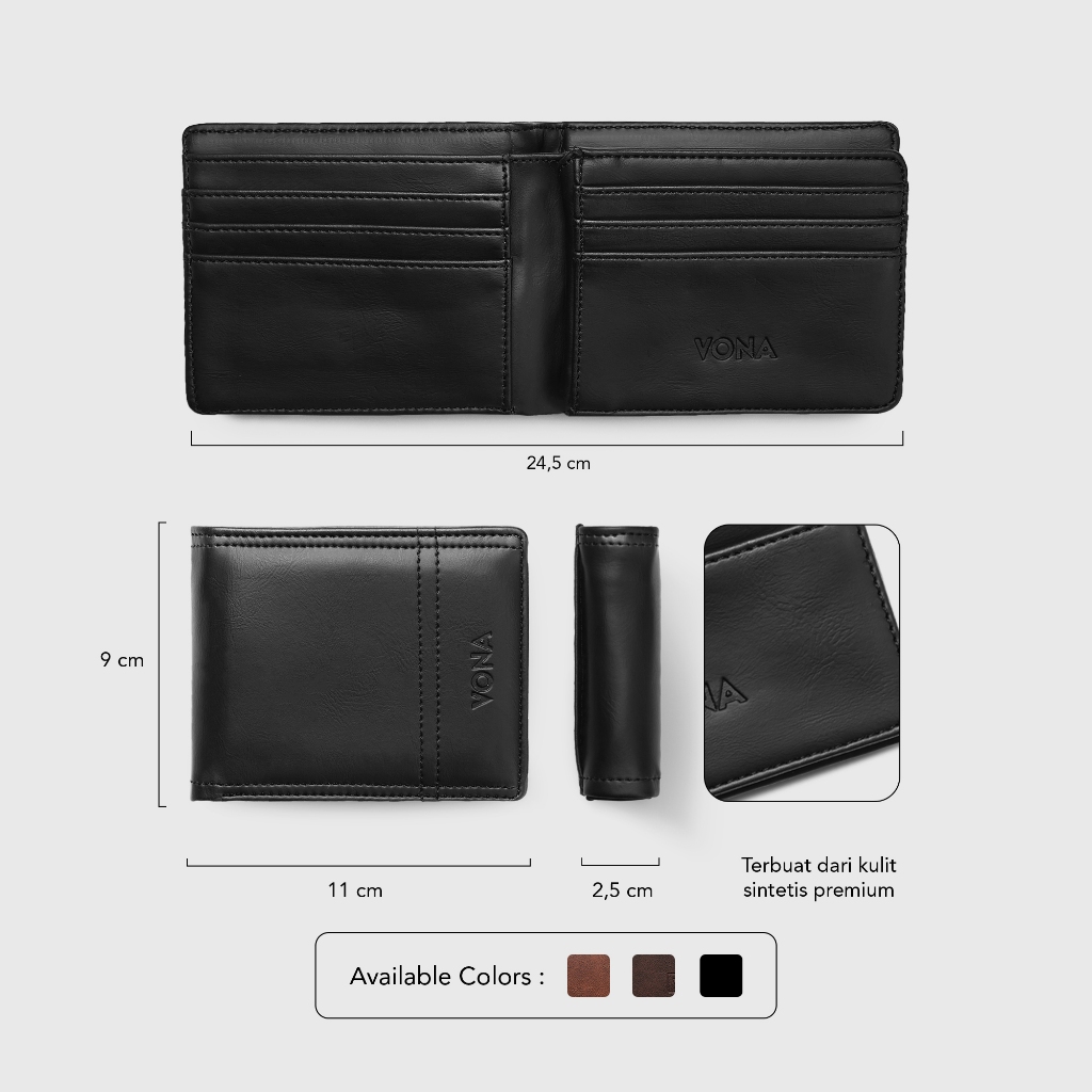 VONA Hector Wallet - Dompet Pria Kulit PU Premium Pendek Lipat Tiga