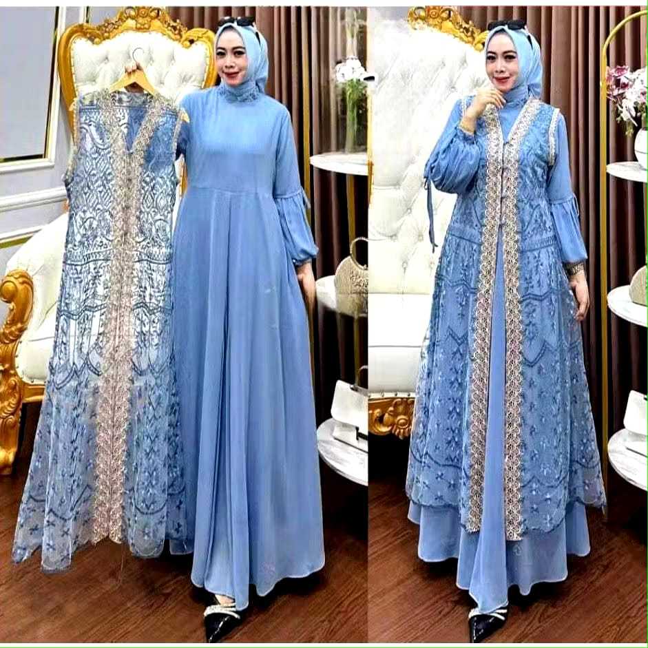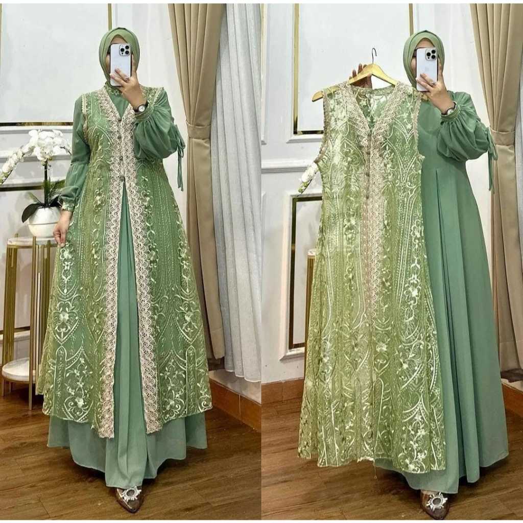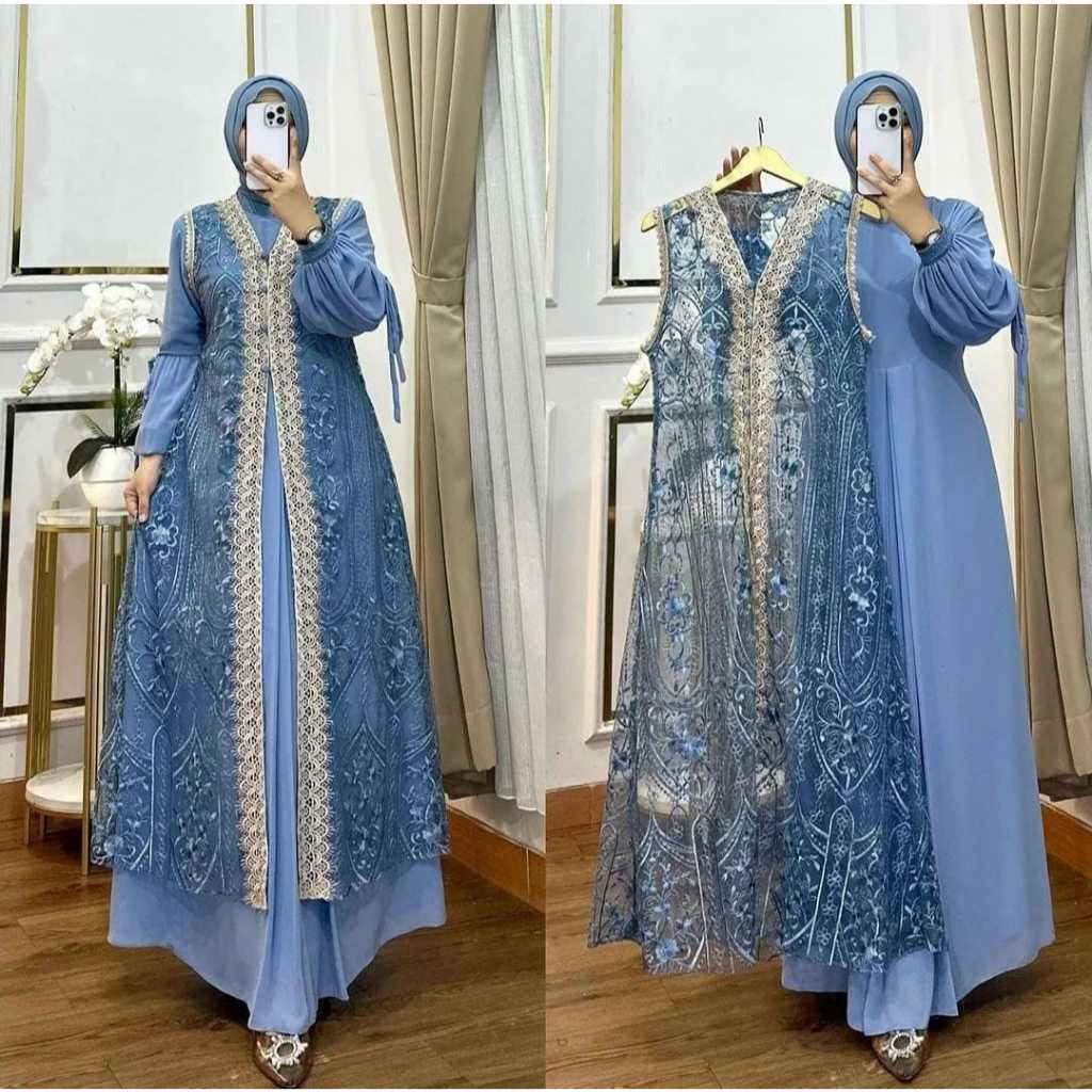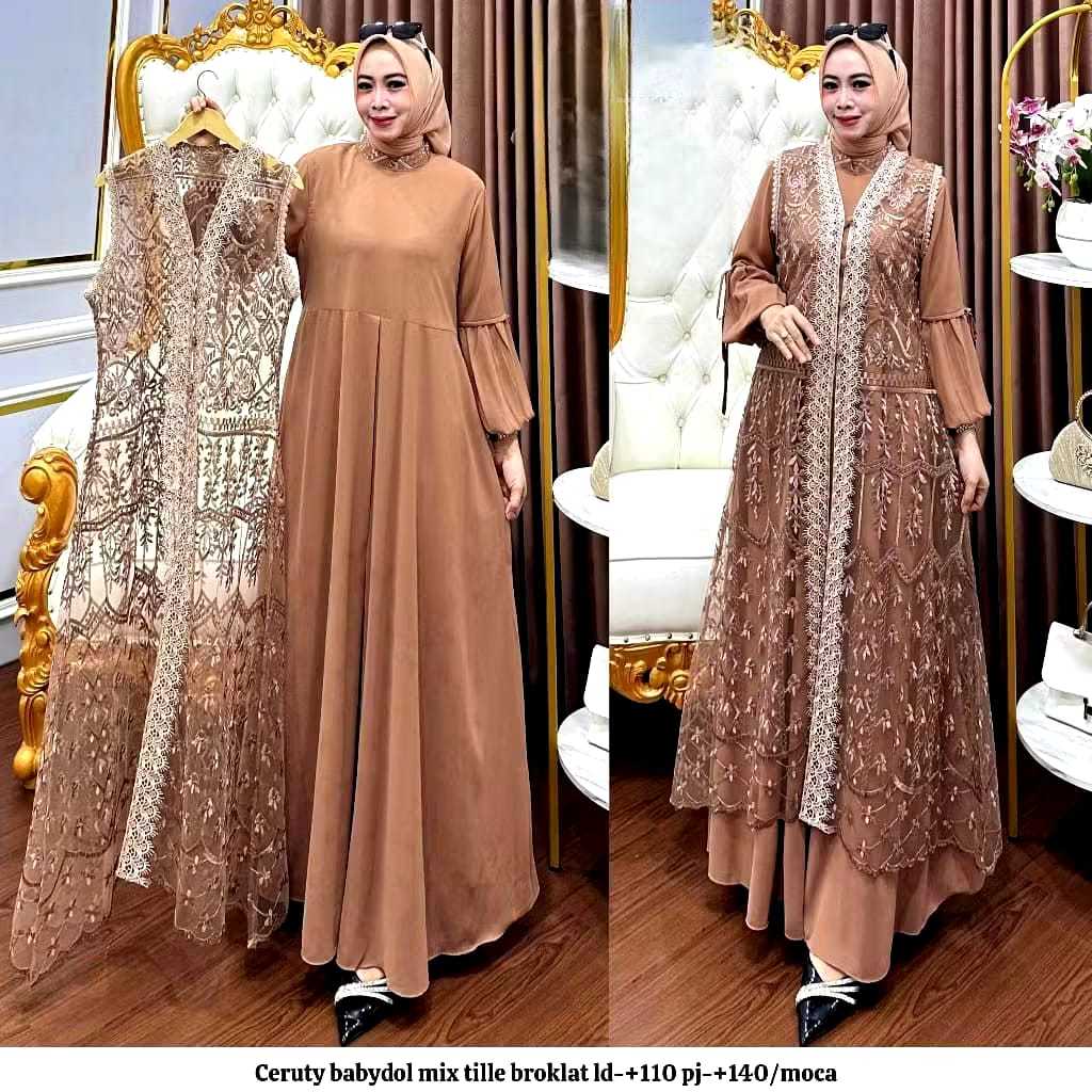 Naura Dress Vol 2 Jumbo M L XL XXL XXXL XXXXL LD 100-140 // Gamis Ceruty Babydoll Mix Brukat Premium // Baju Kondang
