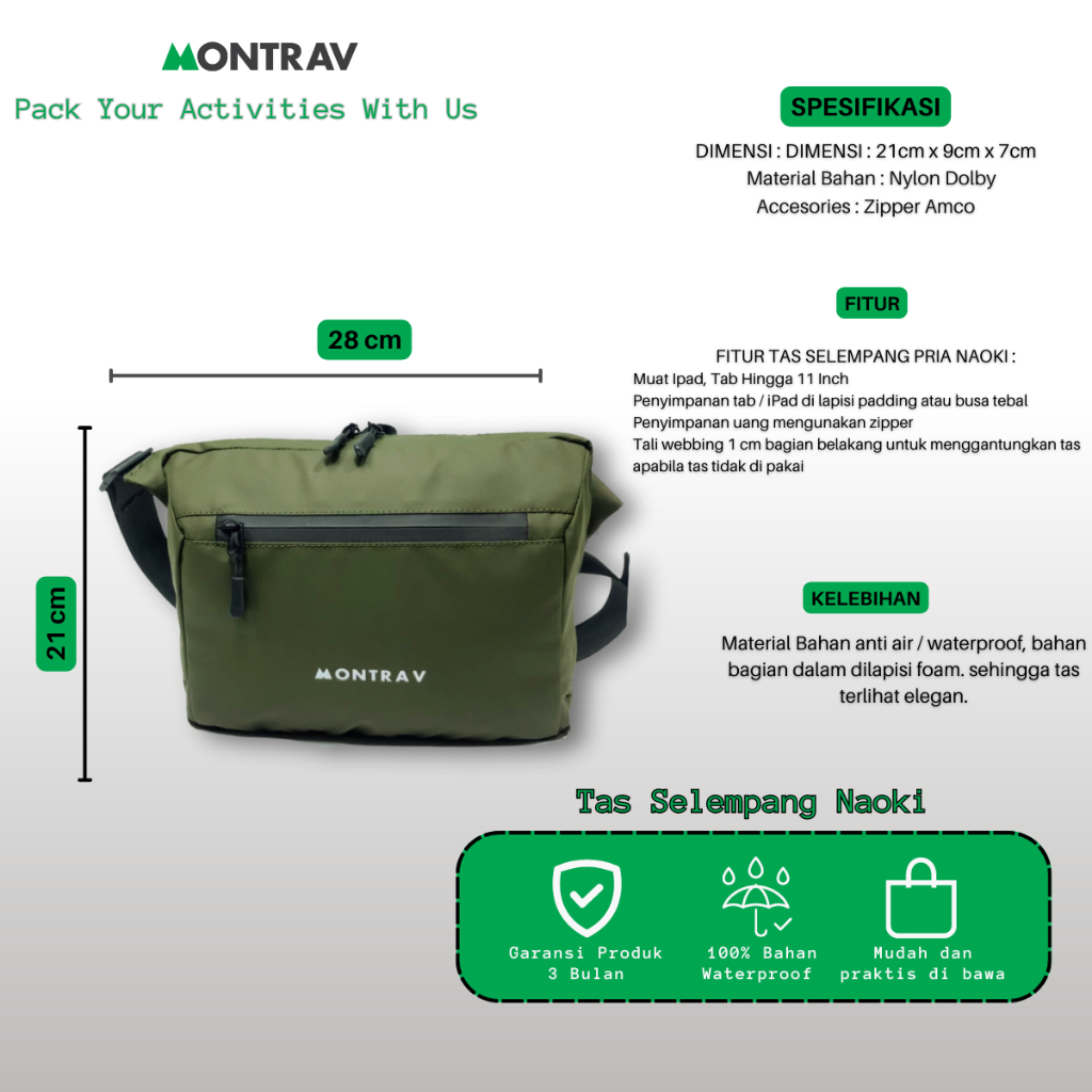 Tas Selempang Pria Waterproof Muat Tab / iPad 11 Inch Naoki