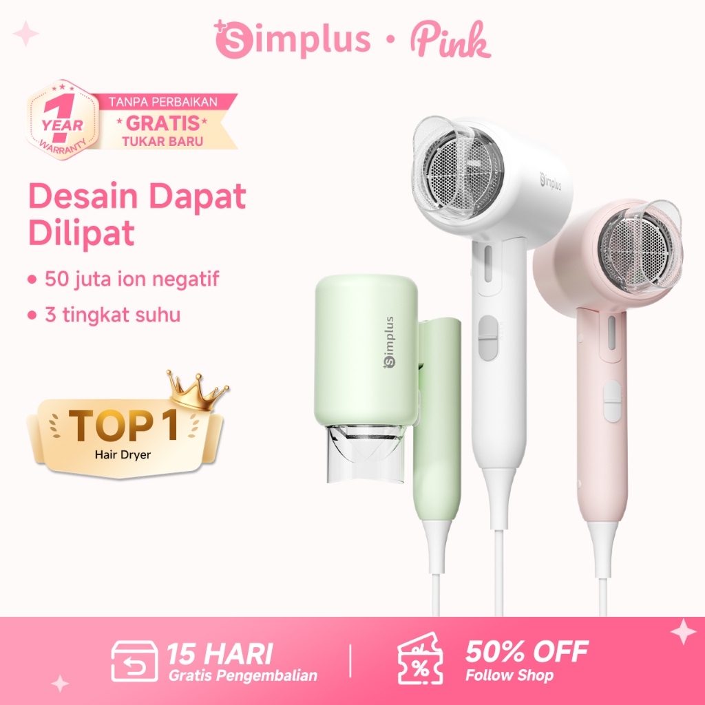 SIMPLUS PINK HAIR DRYER 800W FOLDABLE PENGERING RAMBUT DAPAT DILIPAT PERAWATAN ION NEGATIF