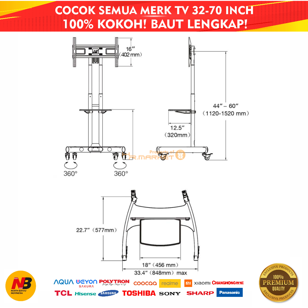 Bracket Standing North Bayou NB AVA1500-60-1p 32" s/d 70" Import
