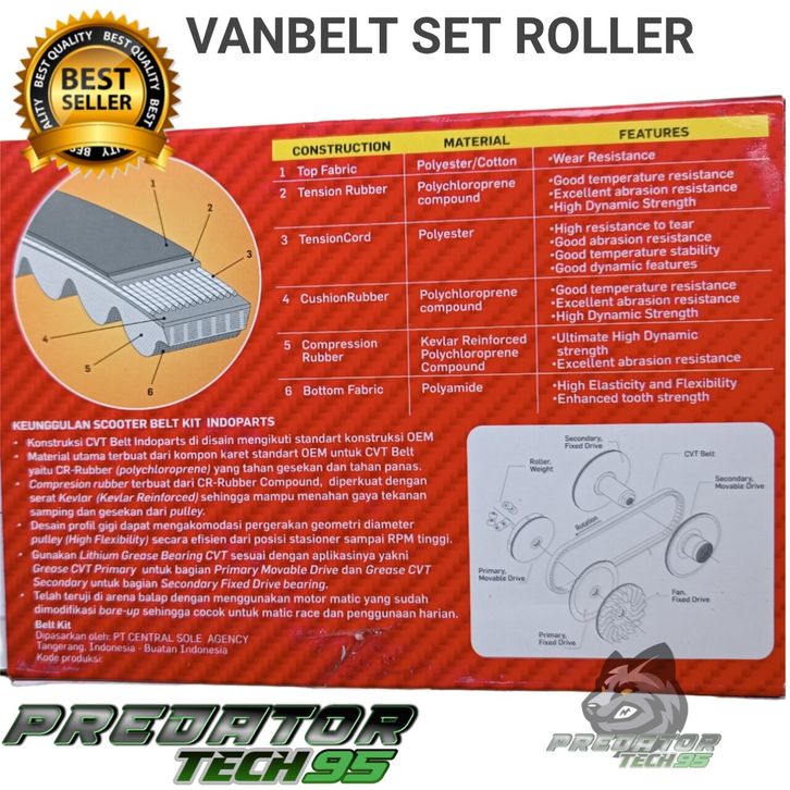 VANBELT V BELT PANBEL ASSY SET ROLLER KOMPLIT ORIGINAL INDOPART HONDA KZL BEAT FI STATER KASAR SCOOPY FI SPACY FI VARIO